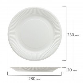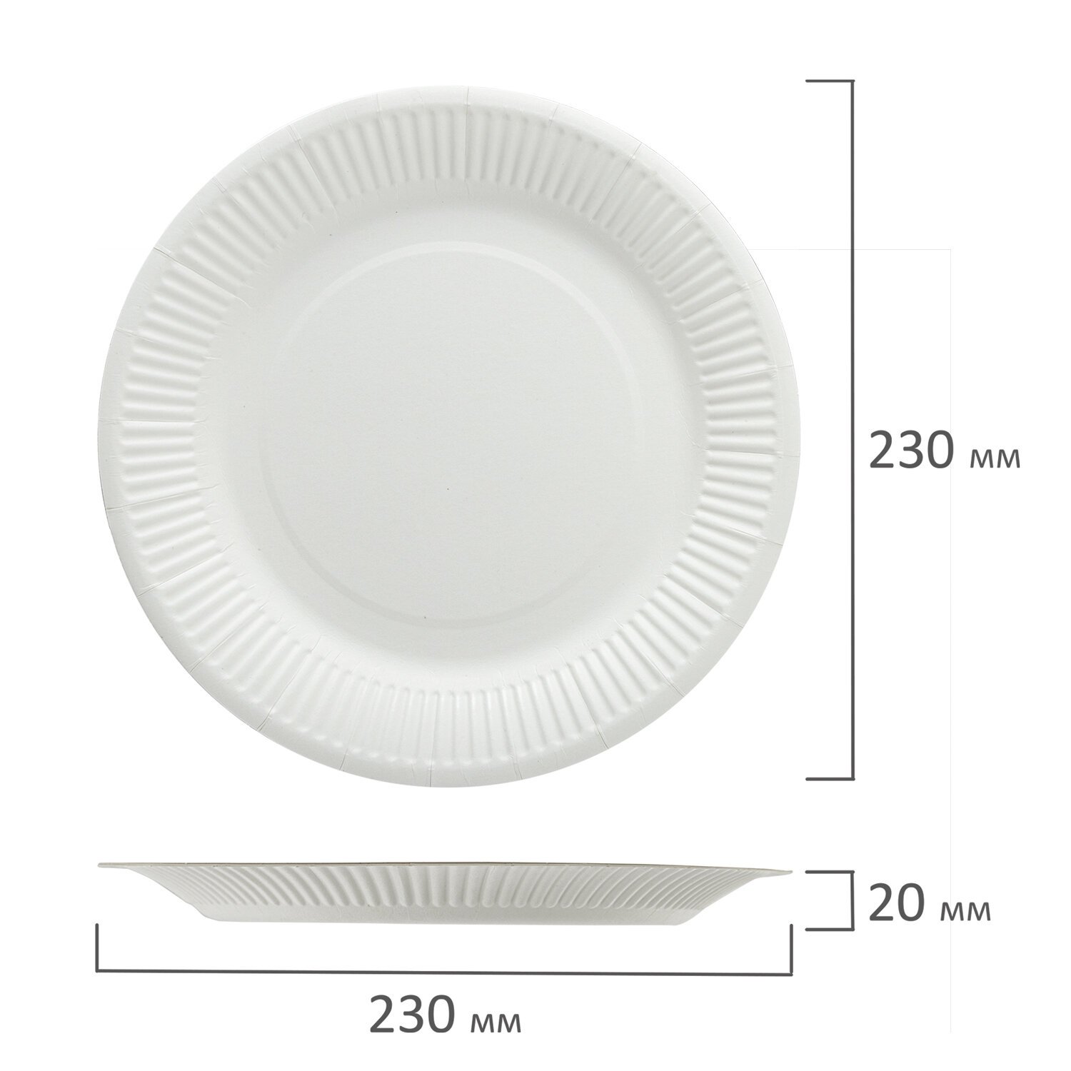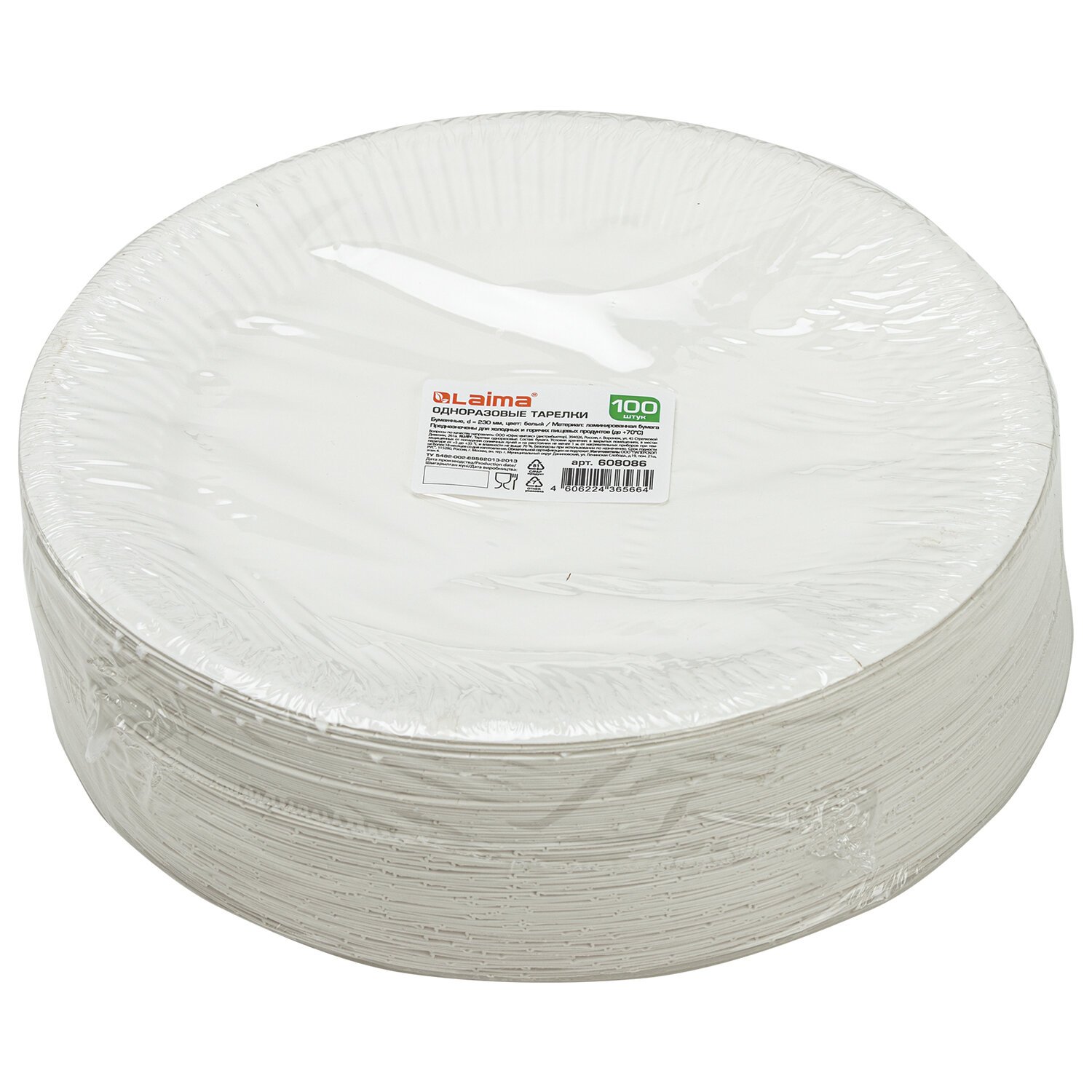 Тарелка одноразовая бумажная 230 мм, КОМПЛЕКТ 100 шт., БЮДЖЕТ, белая мелованная, LAIMA, 608084
