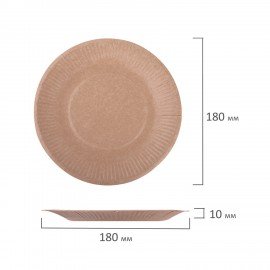 Тарелка одноразовая крафт бумажная 180 мм, КОМПЛЕКТ 100 штук, LAIMA ECO CRAFT, 608087