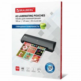 Пленки-заготовки для ламинирования АНТИСТАТИК БОЛЬШОГО ФОРМАТА А3, КОМПЛЕКТ 100 шт., 125 мкм, BRAUBERG, 531797