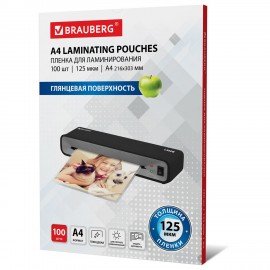 Пленки-заготовки для ламинирования А4, КОМПЛЕКТ 100 шт., 125 мкм, BRAUBERG, 530803