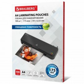 Пленки-заготовки для ламинирования А4, КОМПЛЕКТ 100 шт., 175 мкм, BRAUBERG, 530804