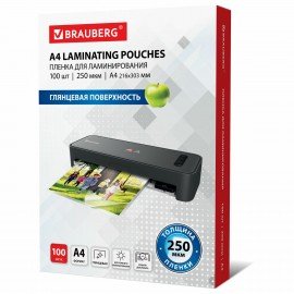 Пленки-заготовки для ламинирования А4, КОМПЛЕКТ 100 шт., 250 мкм, BRAUBERG, 530897