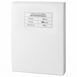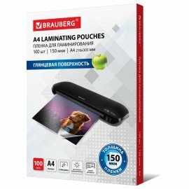Пленки-заготовки для ламинирования А4, КОМПЛЕКТ 100 шт., 150 мкм, BRAUBERG, 531776