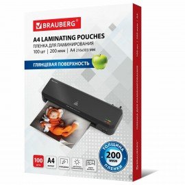 Пленки-заготовки для ламинирования А4, КОМПЛЕКТ 100 шт., 200 мкм, BRAUBERG, 531777