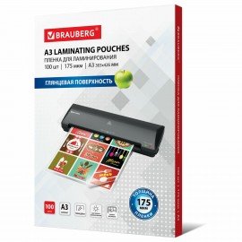 Пленки-заготовки для ламинирования БОЛЬШОГО ФОРМАТА, А3, КОМПЛЕКТ 100 шт., 100 мкм, BRAUBERG, 530895