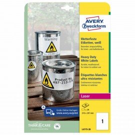 Этикетка самоклеящаяся ВСЕПОГОДНАЯ 210x297 мм, 1 этикетка, полиэстер, белая, 20 листов, Avery Zweckform, L4775-20