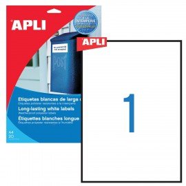 Этикетка самоклеящаяся ВСЕПОГОДНАЯ, 210х297 мм, 1 этикетка, полиэстер, белая, 20 листов, APLI, 01228