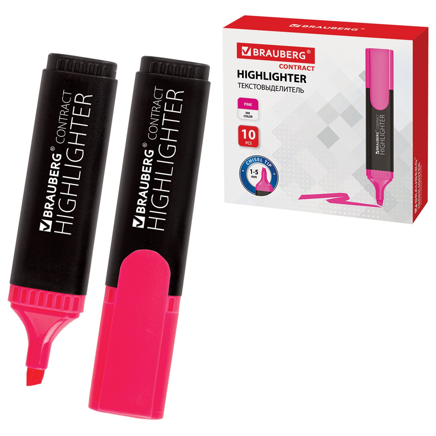 Текстовыделитель BRAUBERG "Contract", РОЗОВЫЙ, линия 1-5 мм, 150392