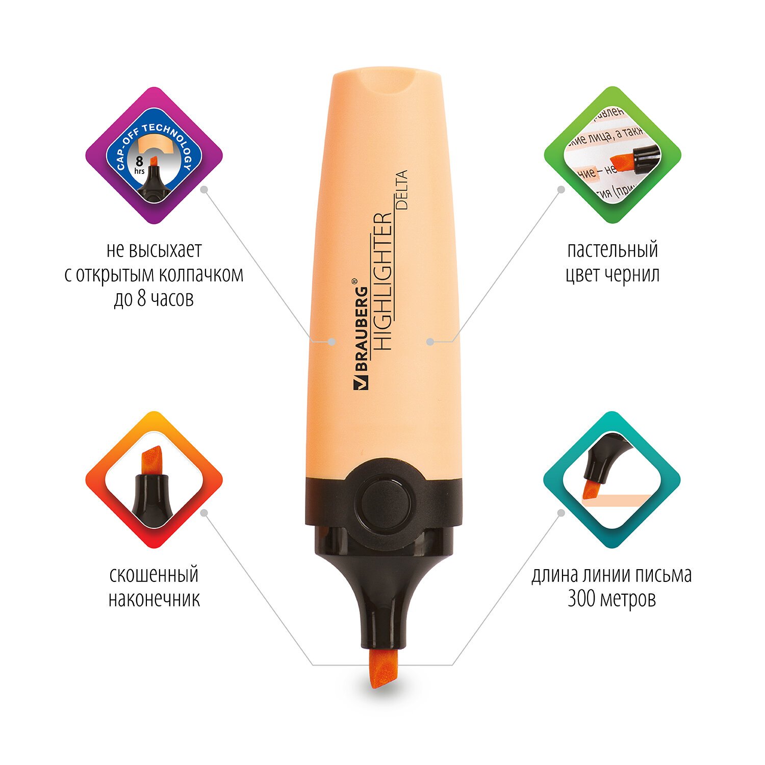 Текстовыделитель BRAUBERG "DELTA PASTEL" предназначен для выделения текста на бумаге любого типа, включая факс-бумагу.
