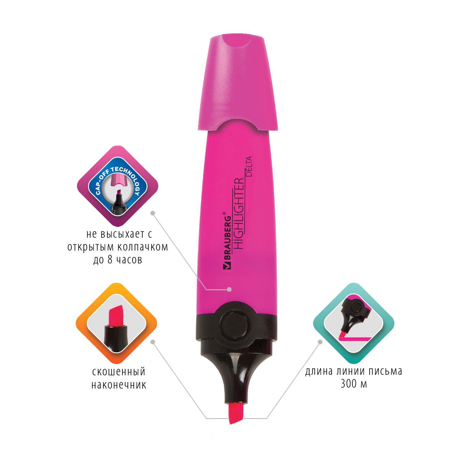 Текстовыделитель BRAUBERG "DELTA", РОЗОВЫЙ, линия 1-5 мм, 151721
