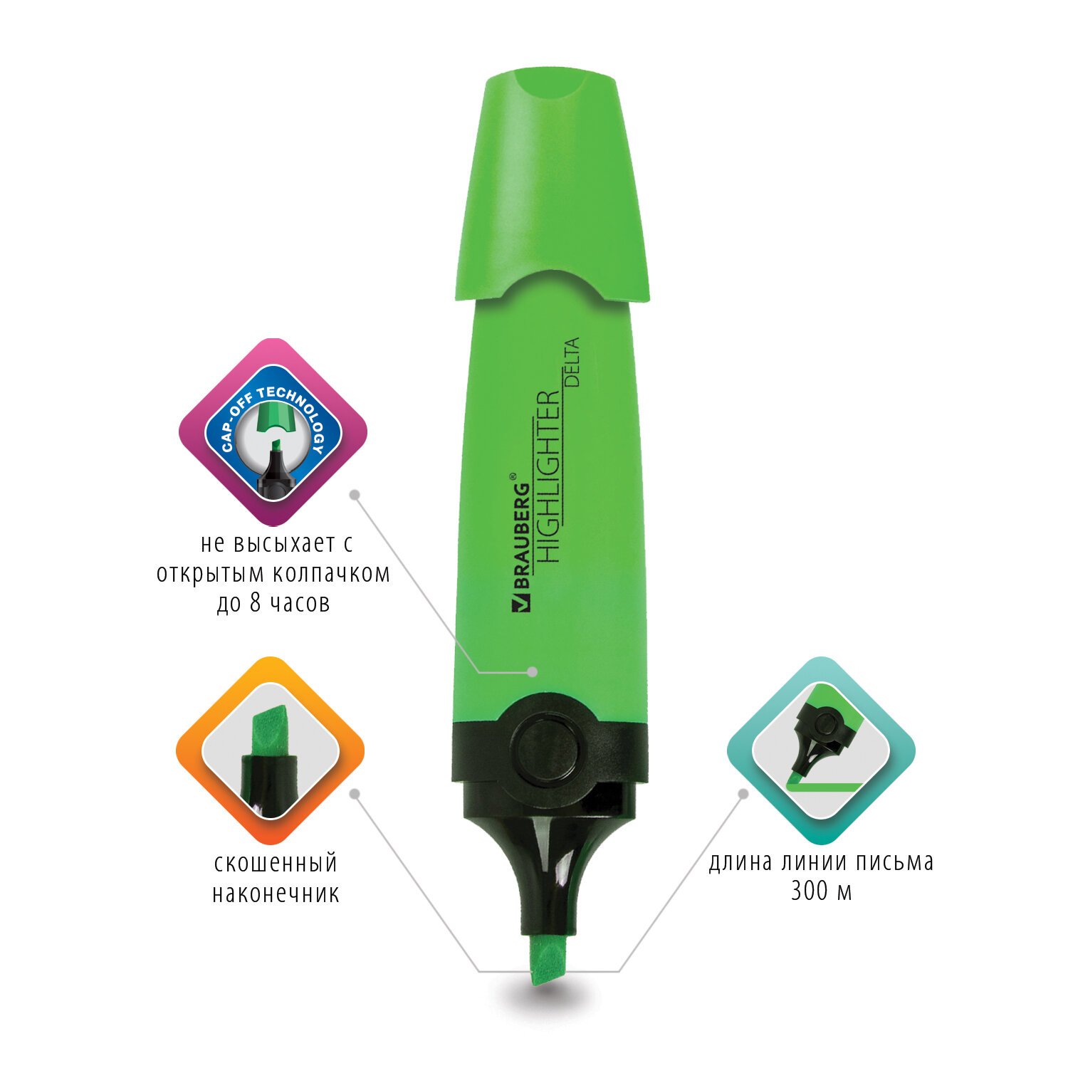 Текстовыделитель BRAUBERG "DELTA", ЗЕЛЕНЫЙ, линия 1-5 мм, 151720
