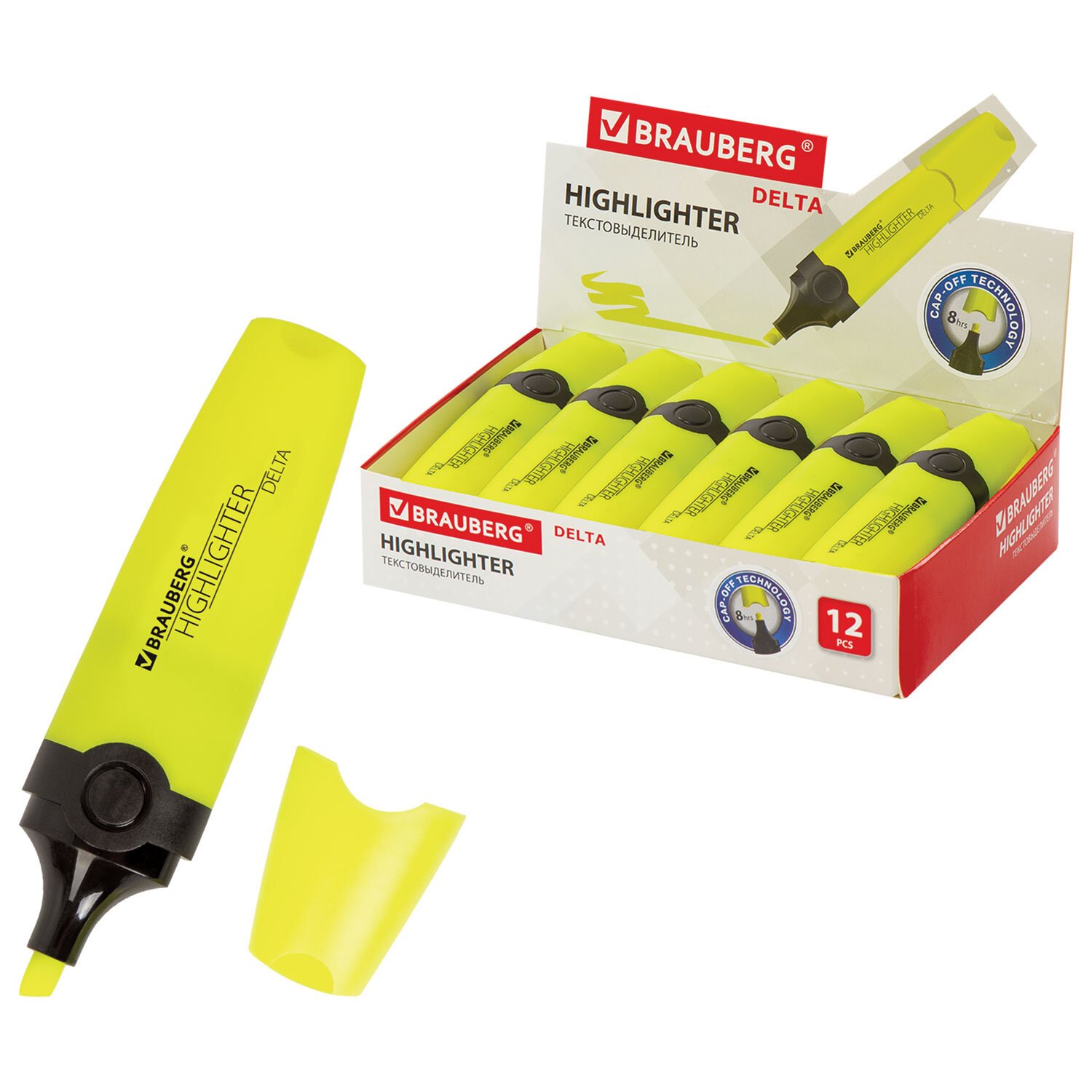 Текстовыделитель BRAUBERG "DELTA", ЖЕЛТЫЙ, линия 1-5 мм, 151719