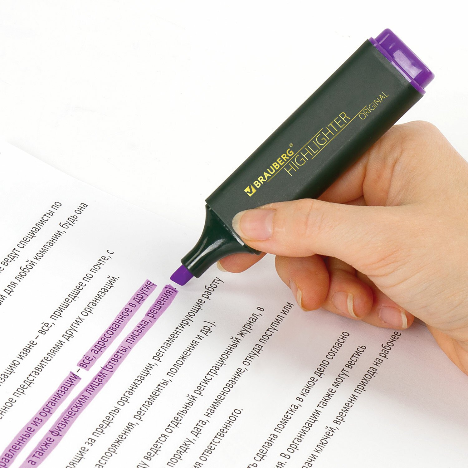 Текстовыделитель BRAUBERG "ORIGINAL" предназначен для выделения текста на бумаге любого типа, включая факс-бумагу.