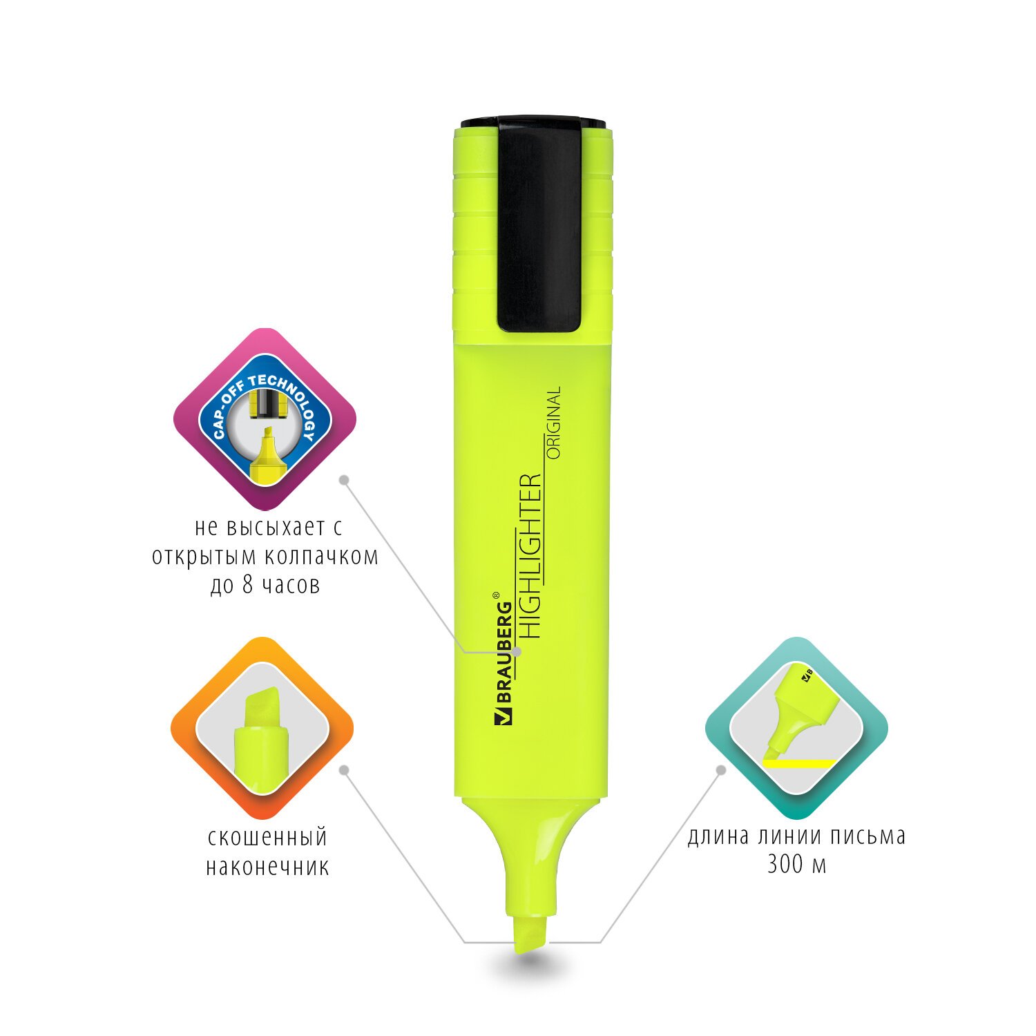 Текстовыделитель BRAUBERG "ORIGINAL NEON" предназначен для выделения текста на бумаге любого типа, включая факс-бумагу.