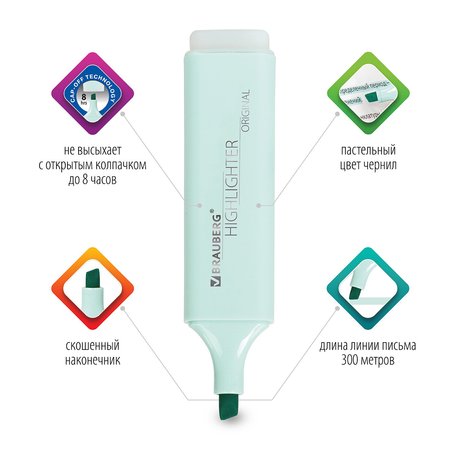 Текстовыделитель BRAUBERG "ORIGINAL PASTEL" предназначен для выделения текста на бумаге любого типа, включая факс-бумагу.