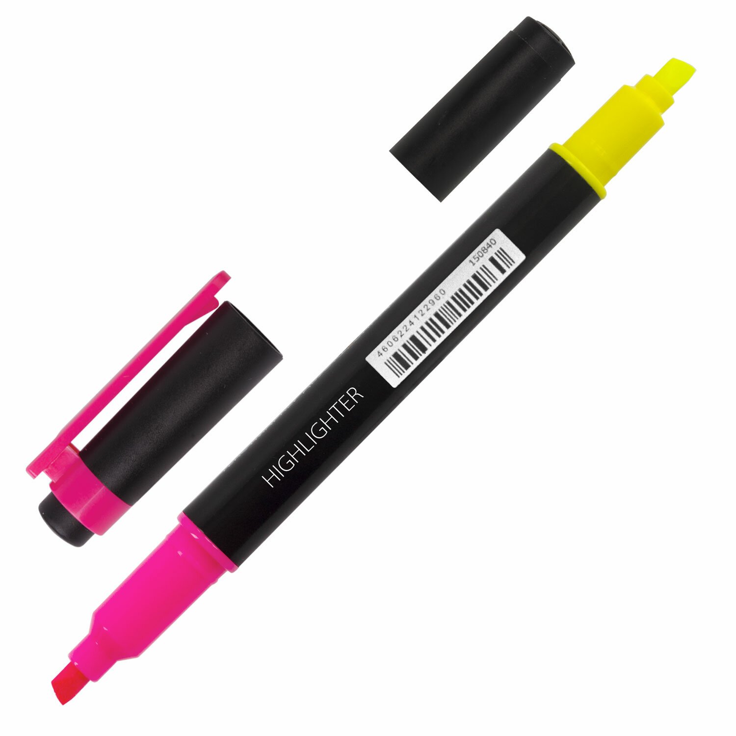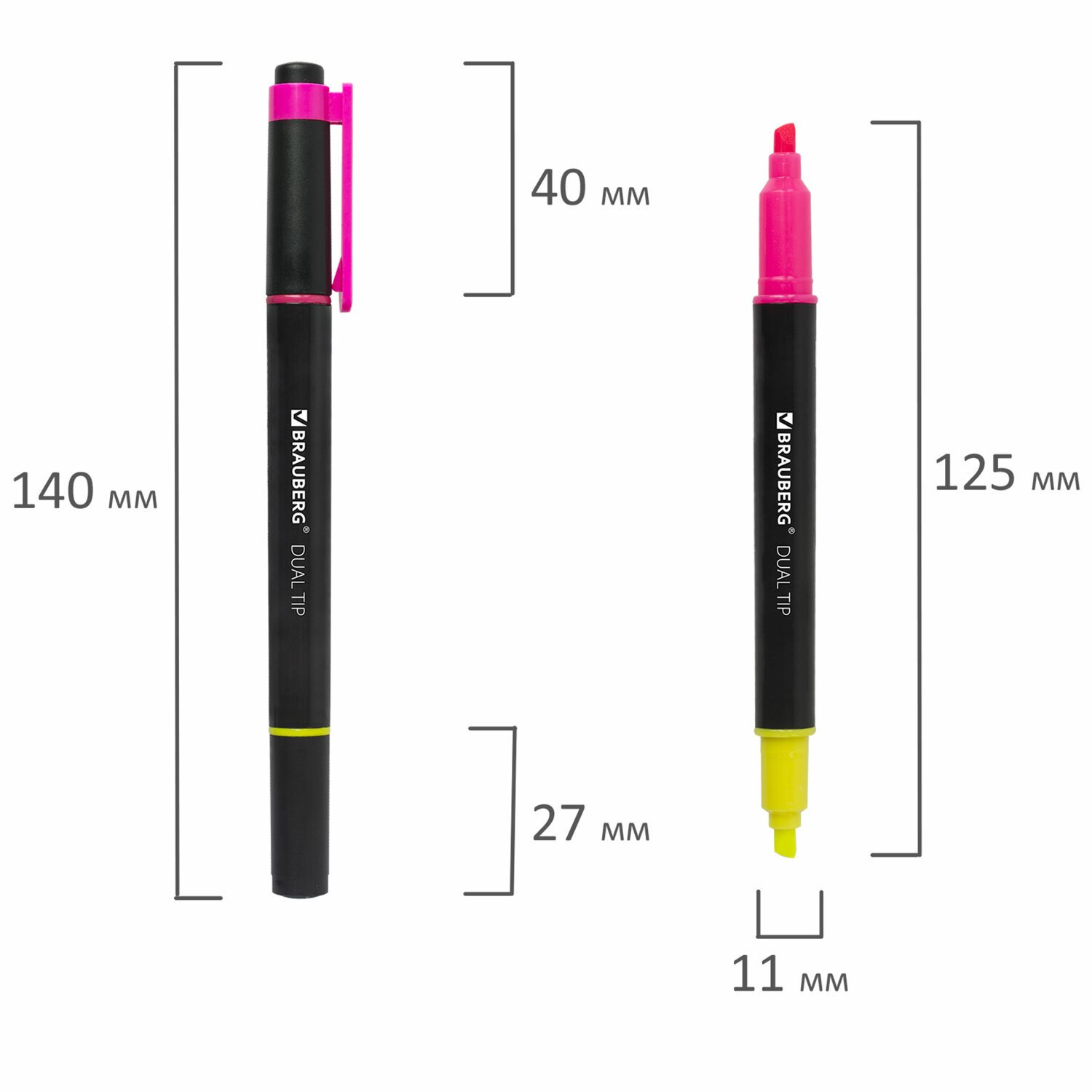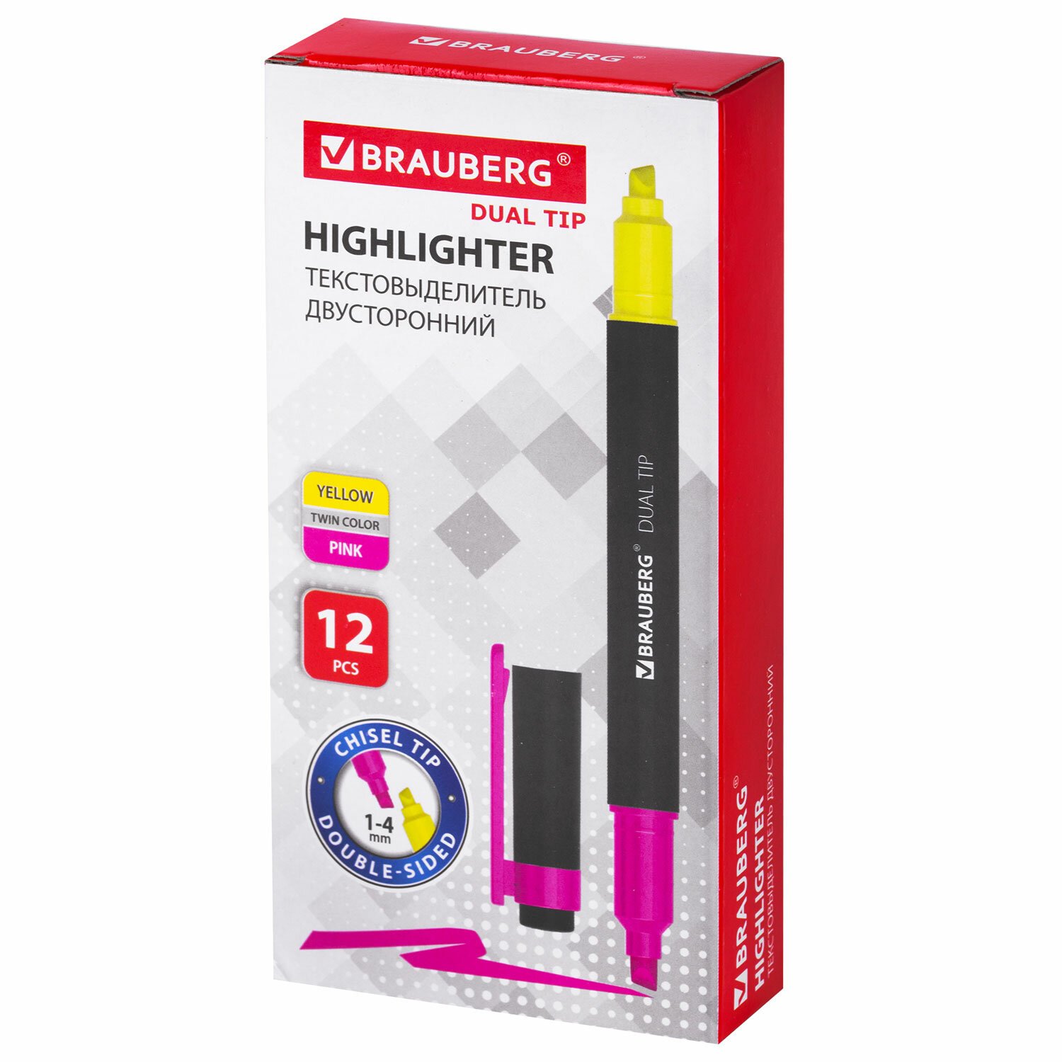 Текстовыделитель двусторонний BRAUBERG, ЖЕЛТЫЙ/РОЗОВЫЙ, линия 1-4 мм, 150840