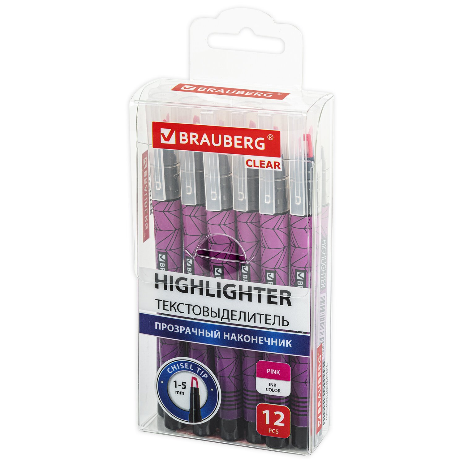 Текстовыделитель с прозрачным наконечником BRAUBERG "Clear", РОЗОВЫЙ, линия 1-5 мм, 152425