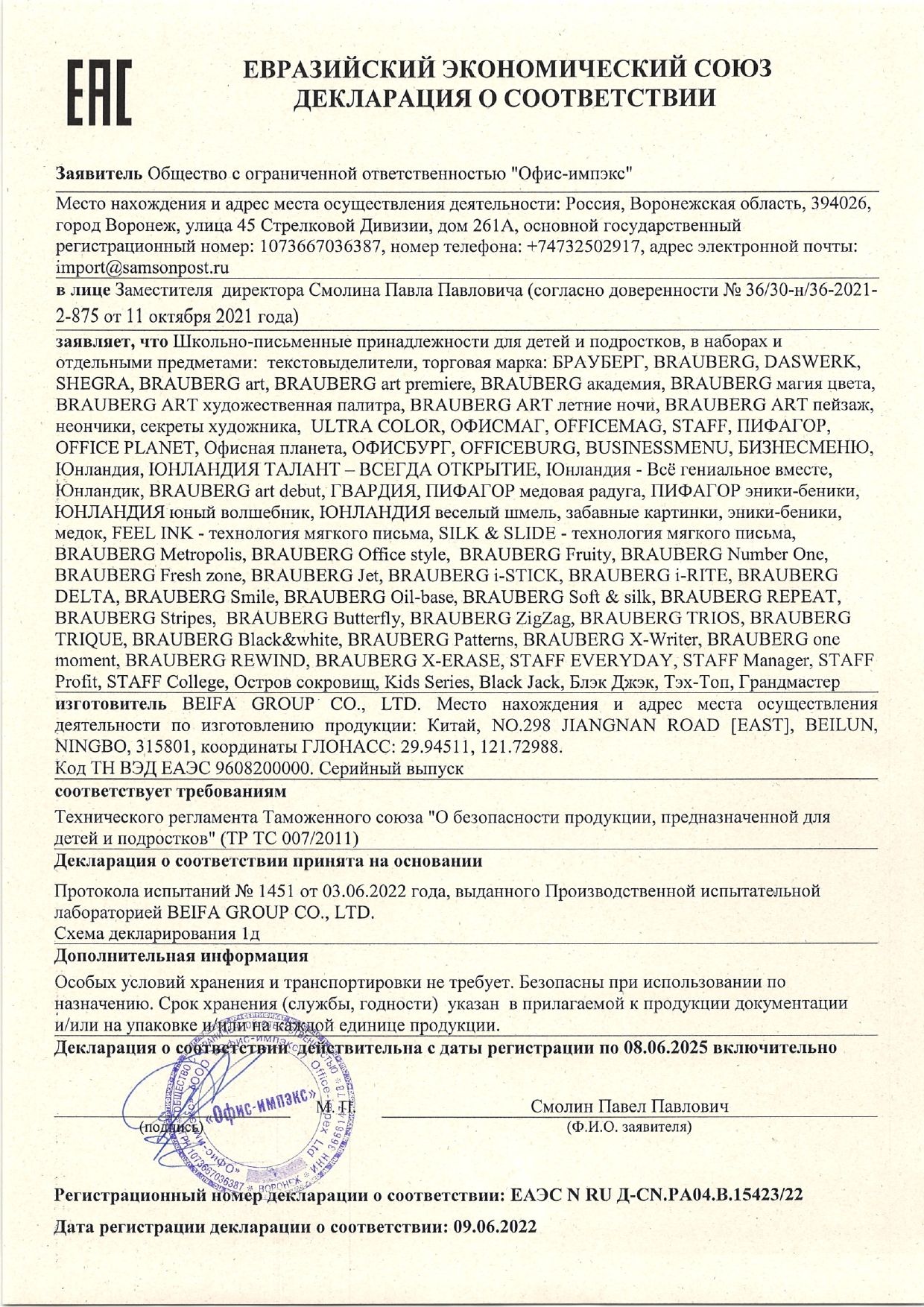 Классический текстмаркер STAFF "Everyday HL-638" предназначен для работы на всех типах бумаги.