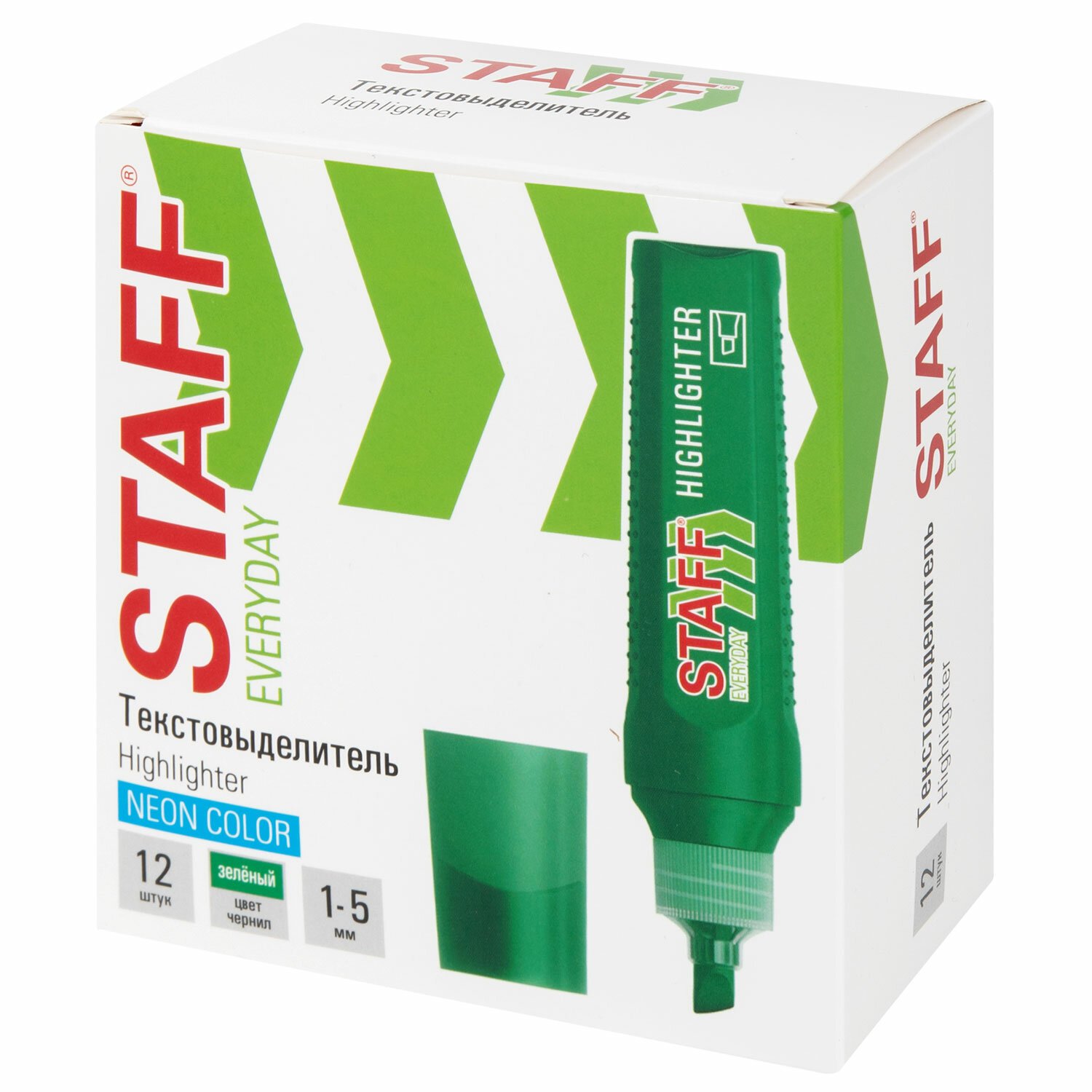 Текстовыделитель STAFF "EVERYDAY HL-707", ЗЕЛЕНЫЙ, линия 1-5 мм, скошенный наконечник, 152543