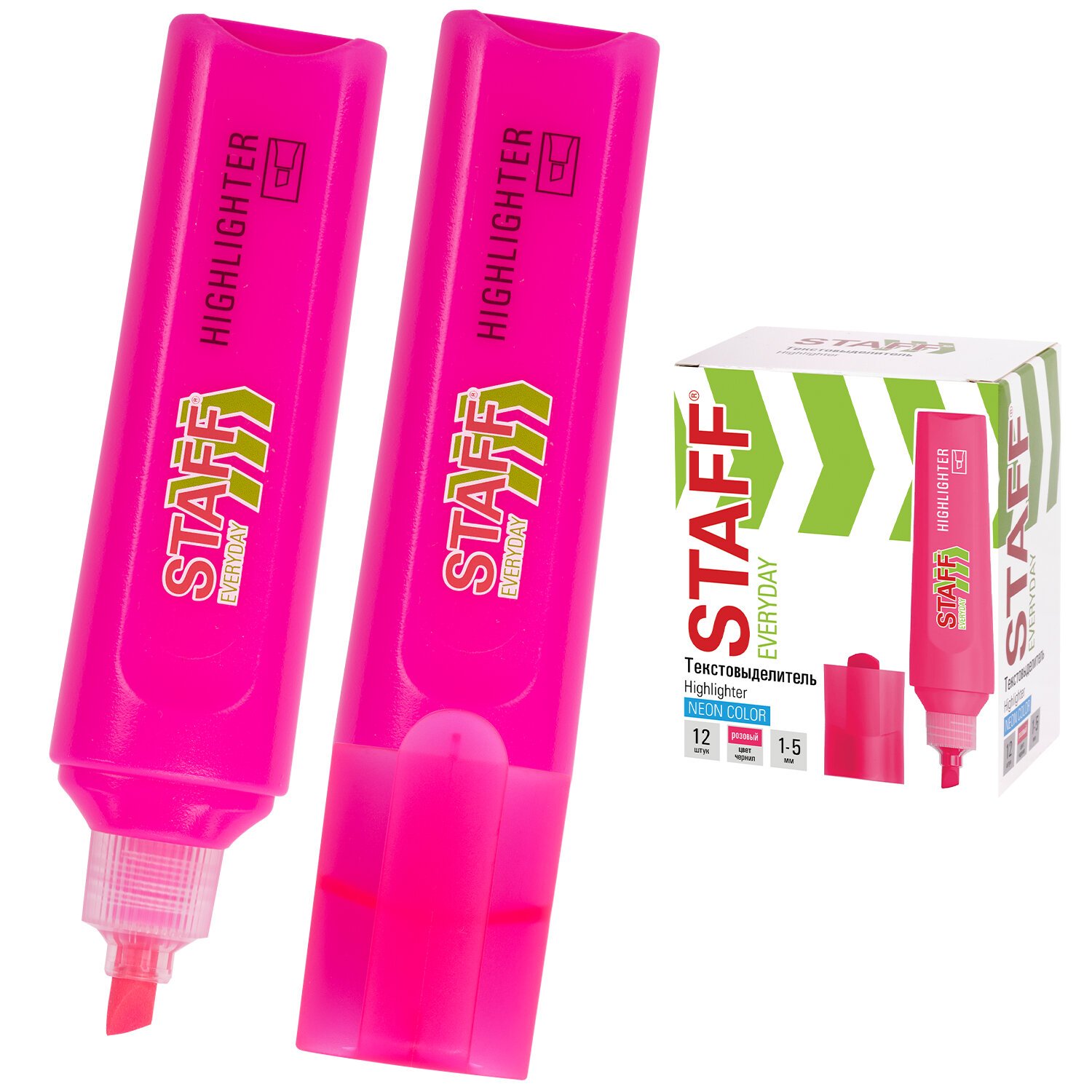 Текстовыделитель STAFF "EVERYDAY HL-720", РОЗОВЫЙ, линия 1-5 мм, скошенный наконечник, 152554