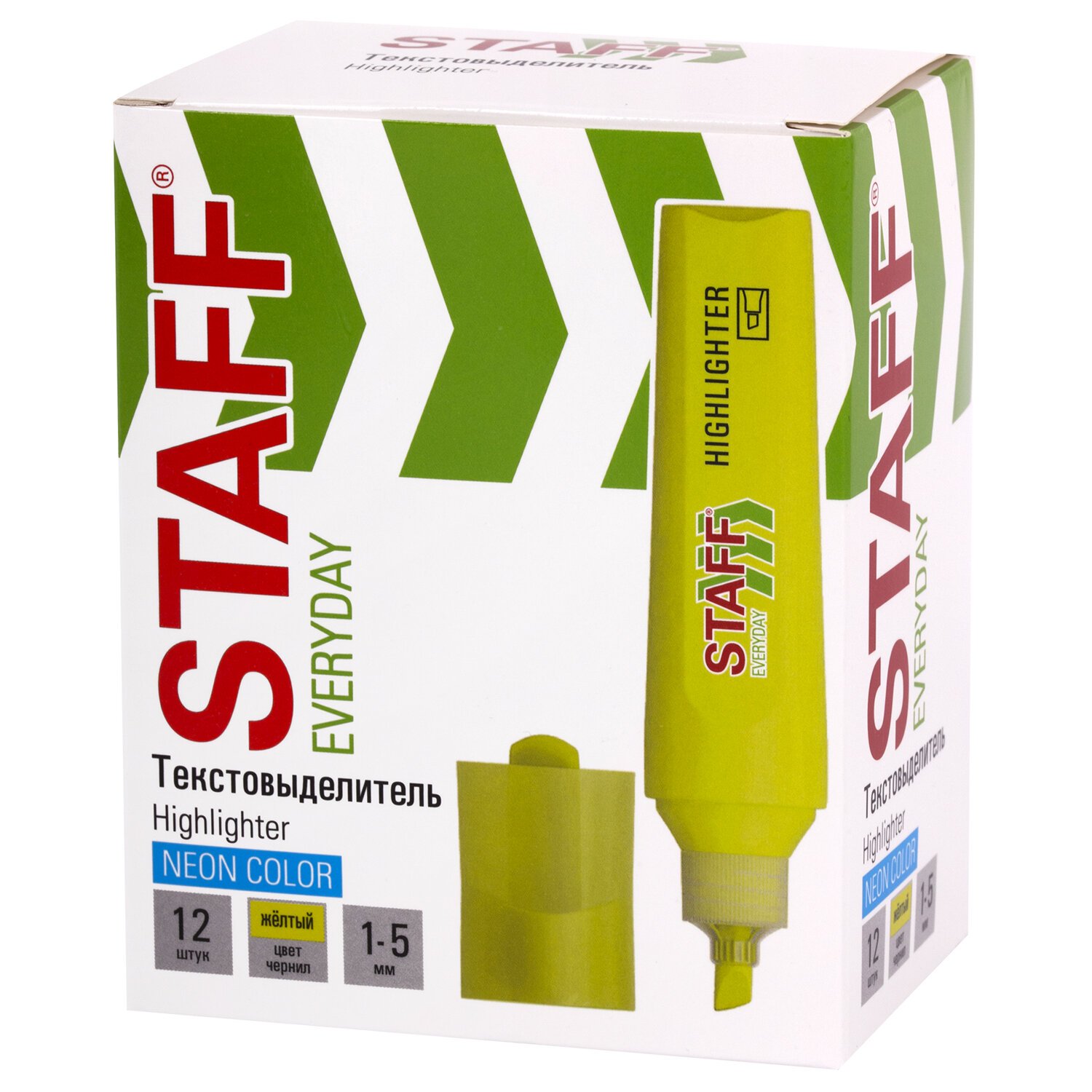Текстовыделитель STAFF "EVERYDAY HL-720", ЖЕЛТЫЙ, линия 1-5 мм, скошенный наконечник, 152553