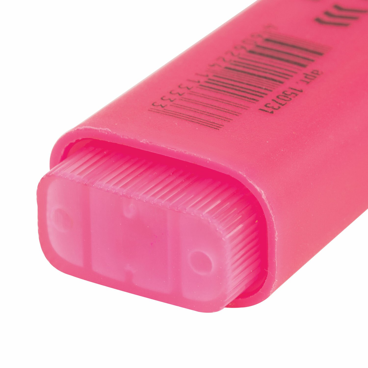 Текстовыделитель розового цвета обладает плоской формой корпуса диаметром 25 мм. Скошенный наконечник имеет толщину линии письма от 1 до 5 мм, что обеспечивает удобство при работе с текстом, напечатанным мелким шрифтом, или таблицами. Текстовыделитель обладает экономным расходом чернил. Чернила на водной основе не размазываются в процессе использования. Изделие не перезаправляется. Колпачок с клипом и соответствует цвету чернил.