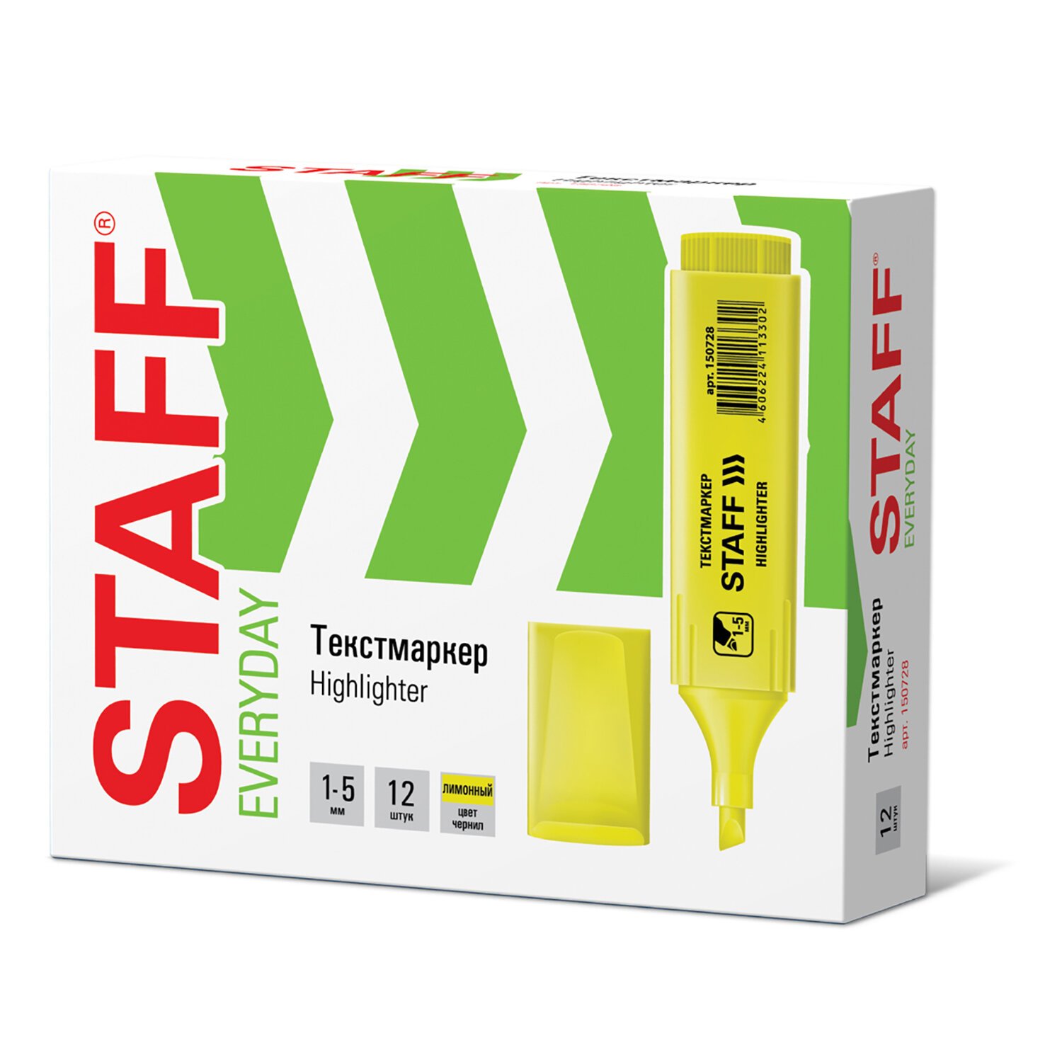 Текстовыделитель STAFF "EVERYDAY HL-728", ЖЕЛТЫЙ, линия 1-5 мм, 150728