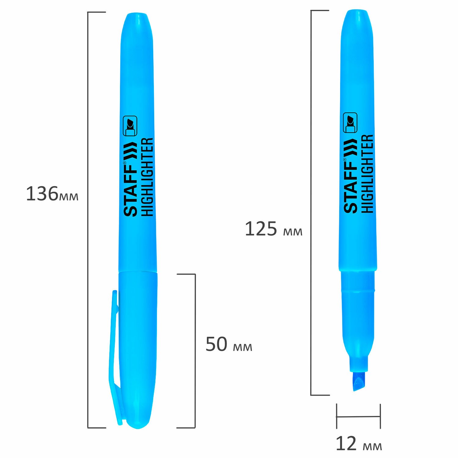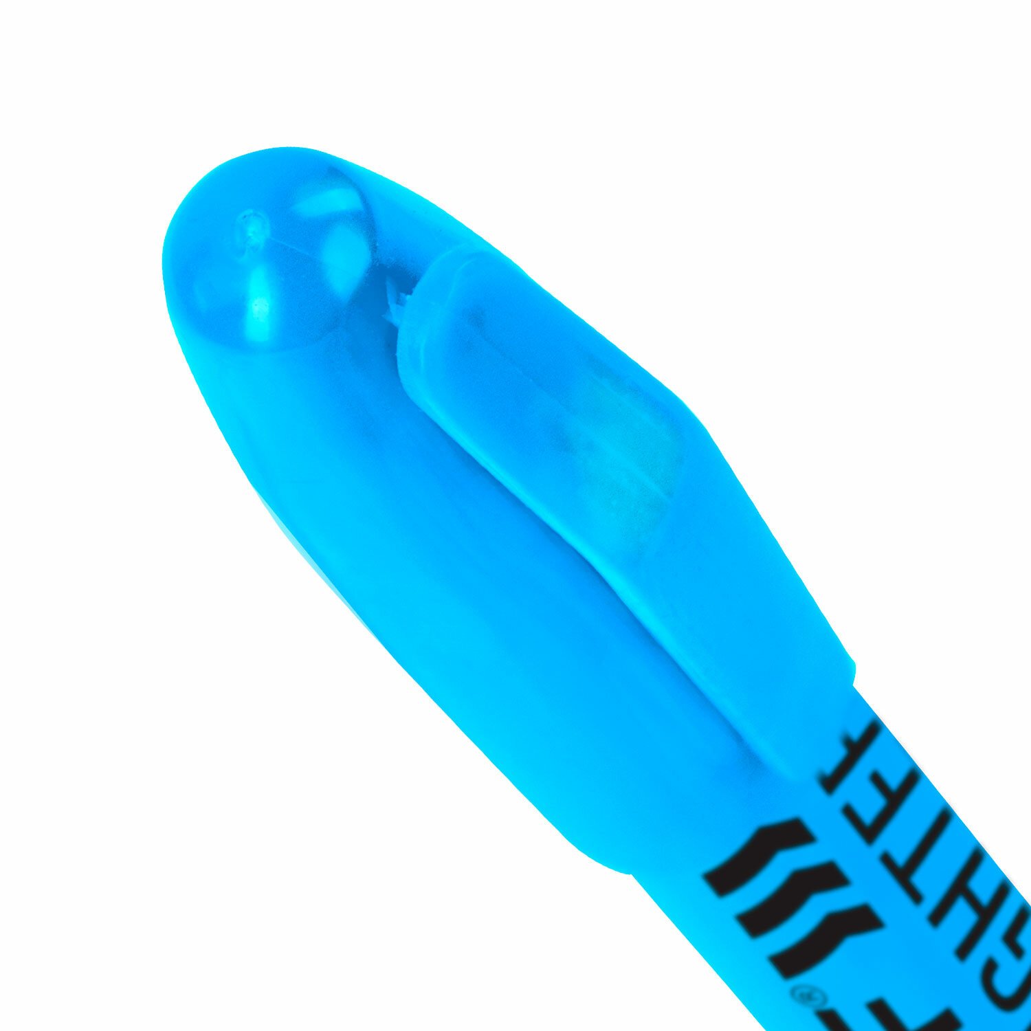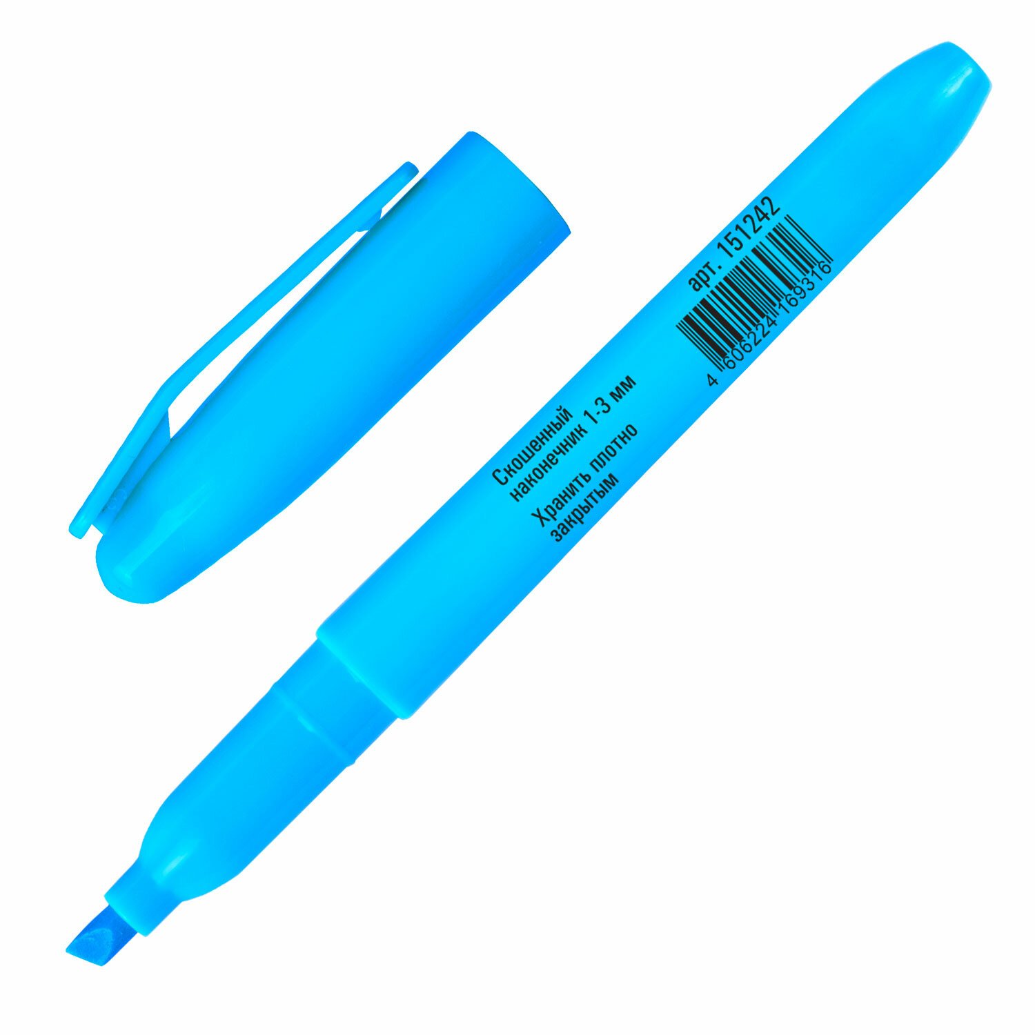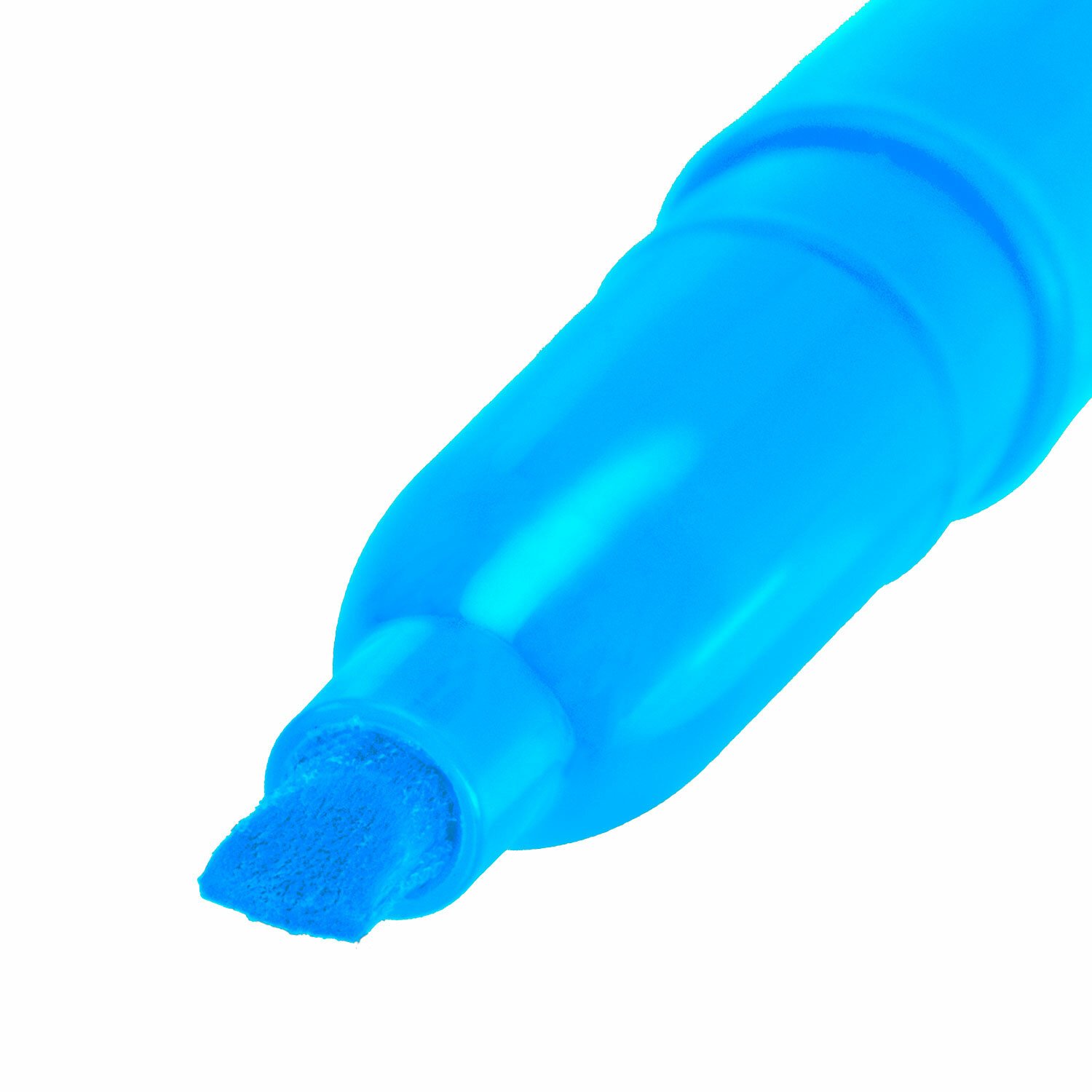 Текстовыделитель голубого цвета обладает круглой формой корпуса диаметром 12 мм. Корпус тектовыделителя оснащен удобной зоной захвата. Скошенный наконечник имеет толщину линии письма от 1 до 3 мм, что обеспечивает удобство при работе с текстом, напечатанным мелким шрифтом, или таблицами. Текстовыделитель обладает экономным расходом чернил. Светоустойчивые чернила на водной основе не выцветают даже на открытом солнце и не размазываются в процессе использования. Изделие не перезаправляется. Корпус с колпачком соответствует цвету чернил.