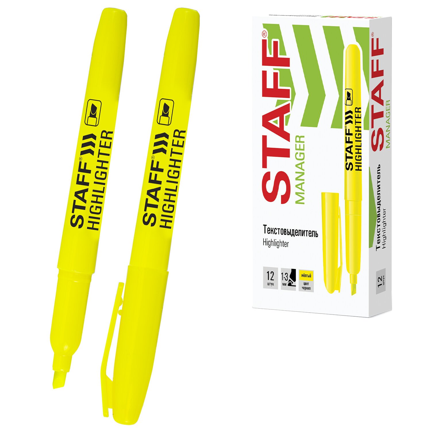 Текстовыделитель STAFF "Manager" HL-238, ЖЕЛТЫЙ, линия 1-3 мм, 151238
