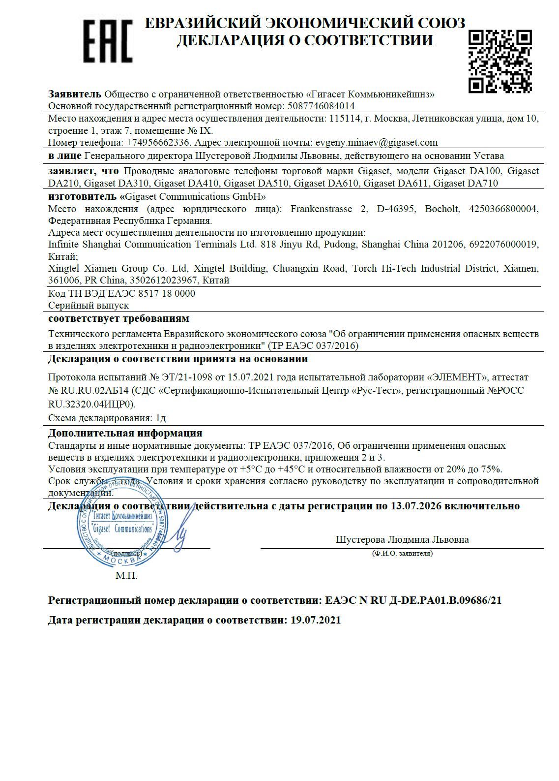 Gigaset DA611 можно подключить непосредственно к основному разъему или использовать в качестве расширения телефонной системы. Gigaset DA611 совместим со слуховыми аппаратами согласно ITU-T P.370 (который заменяет CCITT P37). Микрофон и/или телефонную трубку можно выключить во время разговора и проигрывать музыку на удержании.