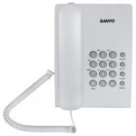 Стационарный телефон SANYO RA-S204W для совершения исходящих и приема входящих голосовых звонков. Телефонный проводной аппарат занимает мало места и обладает необходимым функционалом телефонии