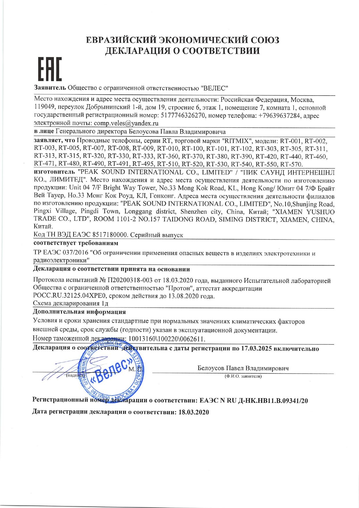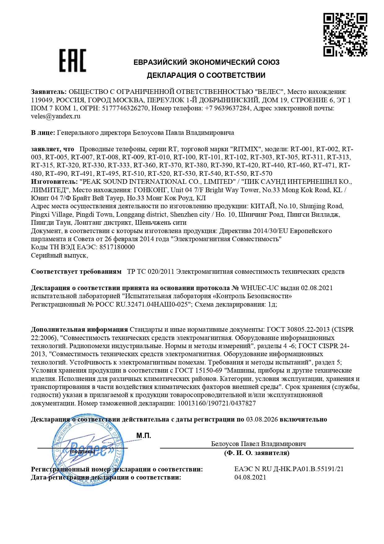 Телефон RITMIX RT-550 black, АОН, спикерфон, память 100 номеров, тональный/импульсный режим, 80001483