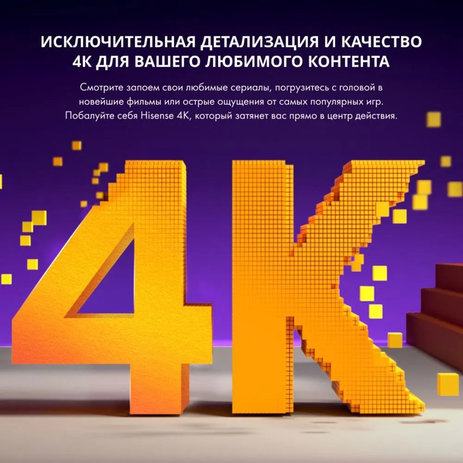 Полноценное разрешение 4K. Смотрите свои любимые фильмы, телепередачи, наслаждайтесь играми и не только с четким изображением 4K. Технология AI Upscaler анализирует каждый кадр и пересчитывает пиксели для создания оптимального изображения в формате 4K.