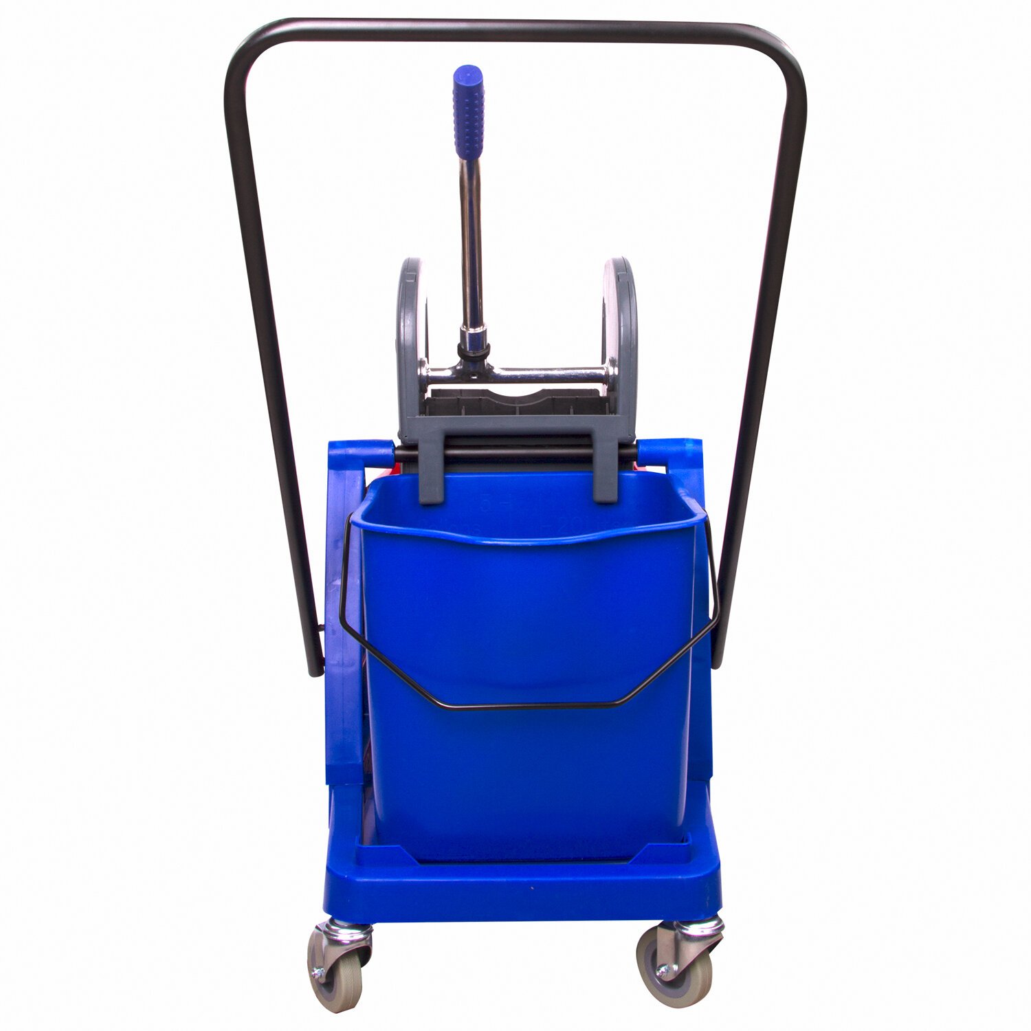 Тележка уборочная BRABIX, 1 съемное ведро 25 л, механический отжим, корзина, металлический каркас, синяя, 601498