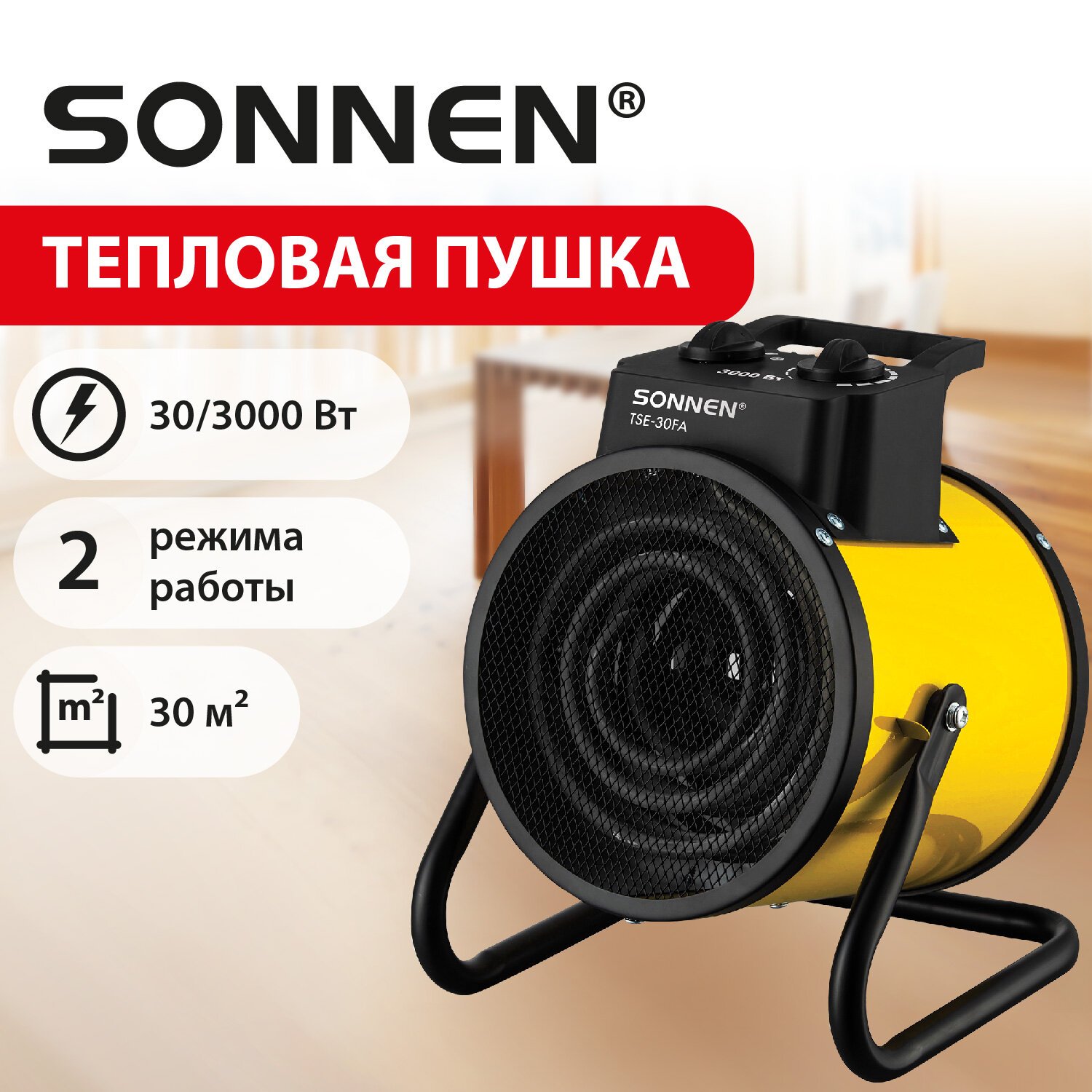 Тепловая пушка SONNEN TSE-30FA, 3000 Вт, ТЭН/спиральный нагревательный элемент, 2 режима, 456208