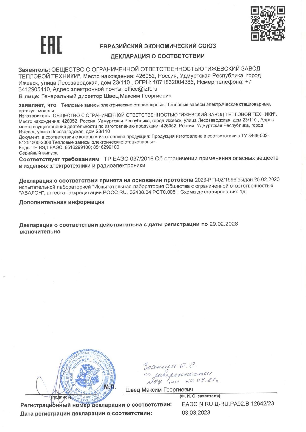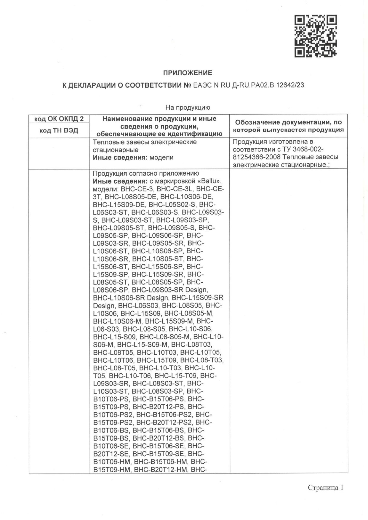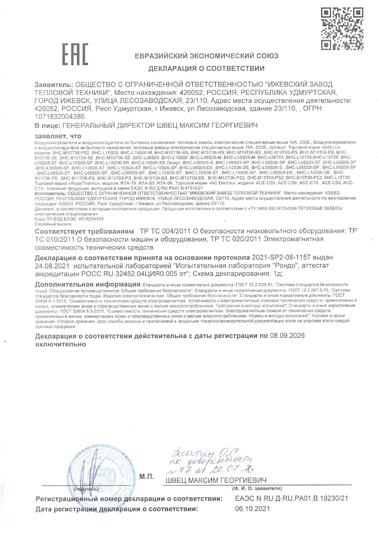 BALLU BHC-L09S05-ST – компактная тепловая завеса в низкопрофильном корпусе мощностью 5 кВт и производительностью 480 м2/ч.