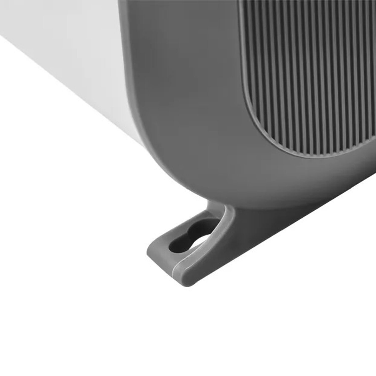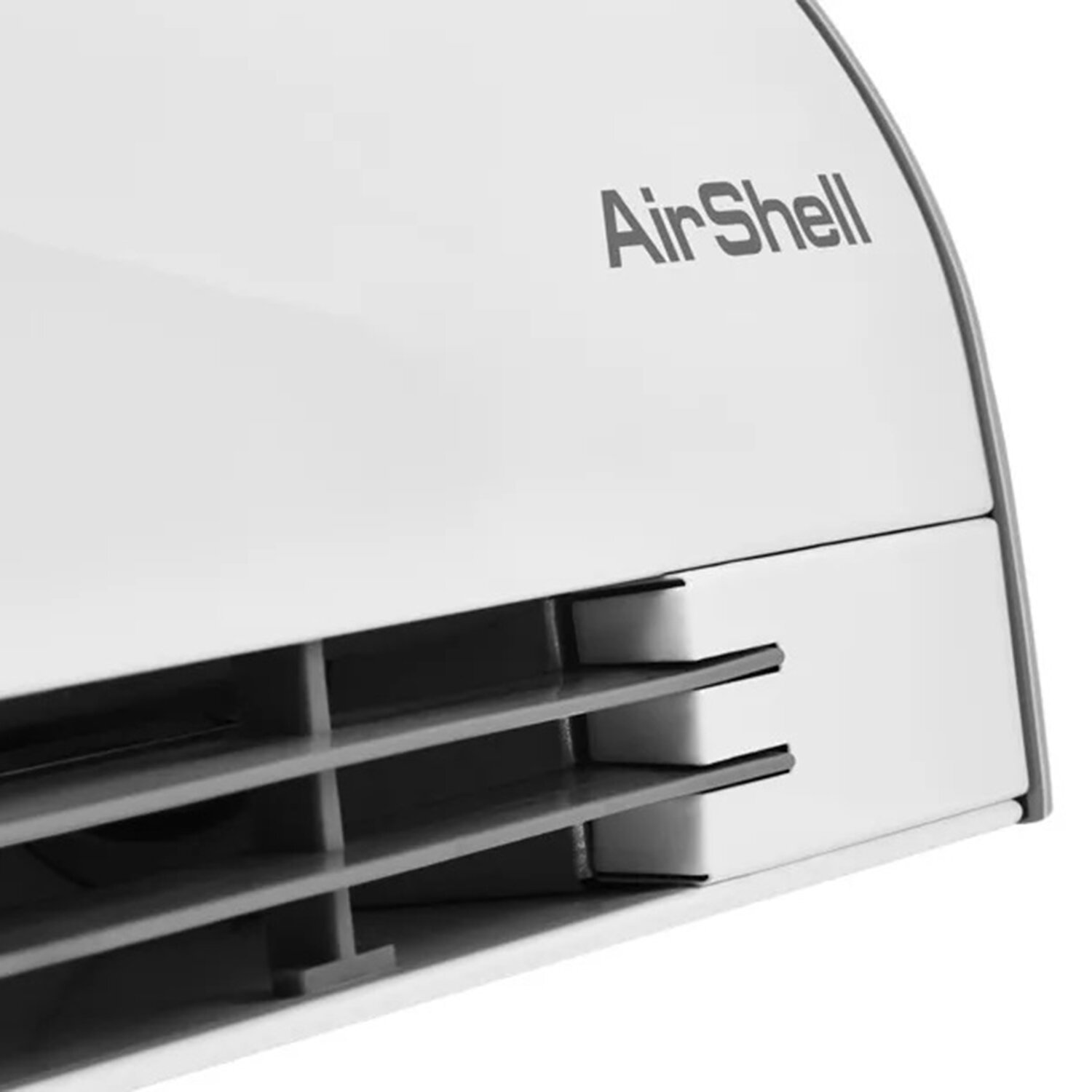 Передняя панель без перфорации блокирует распространение шума от вентиляционных колес направляя его в потолок, а не в проходящих людей, что делает завесу значительно тише аналогов в классическом корпусе.