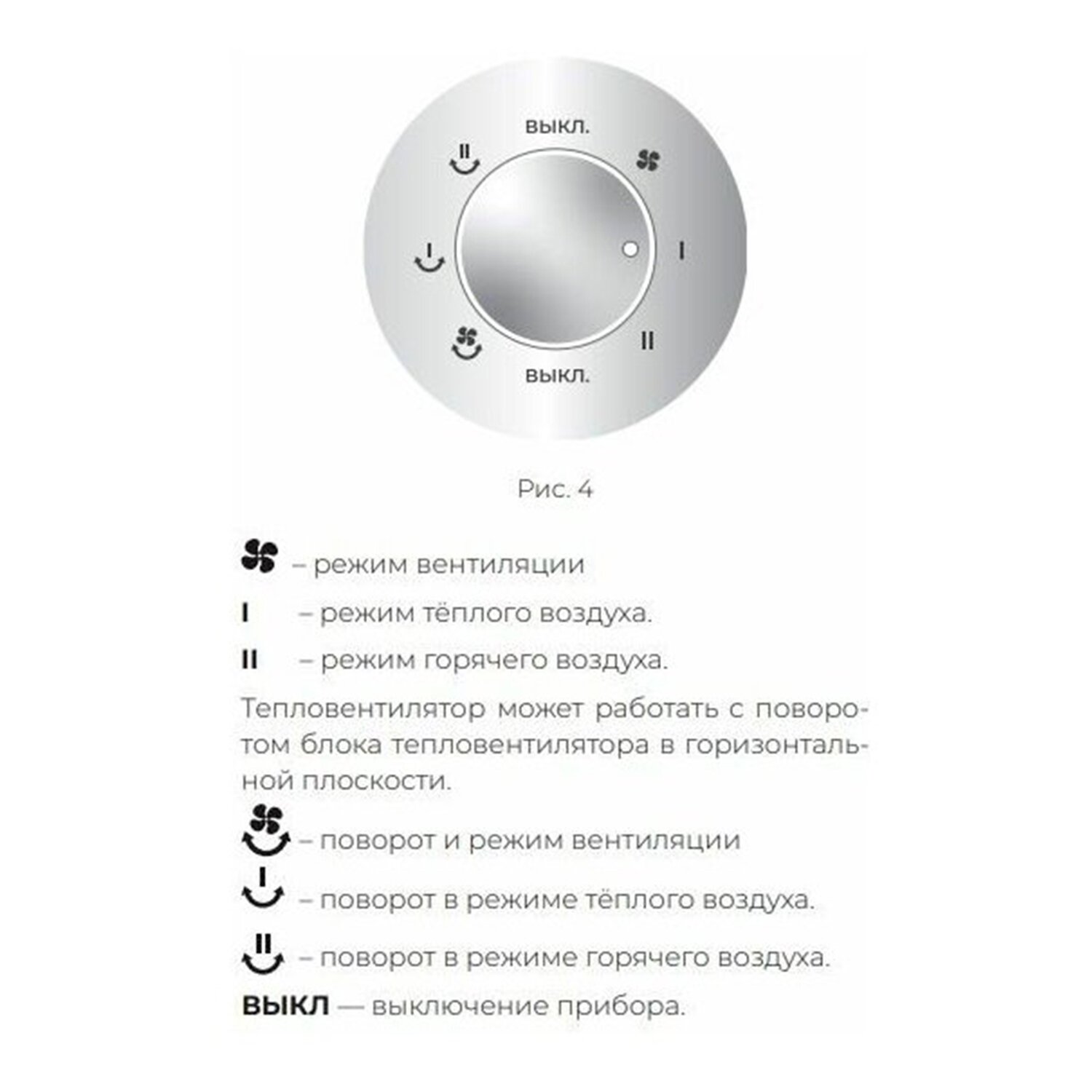 - 3 режима работы: вентиляция воздуха без нагрева, режим тёплого воздуха, режим горячего воздуха;