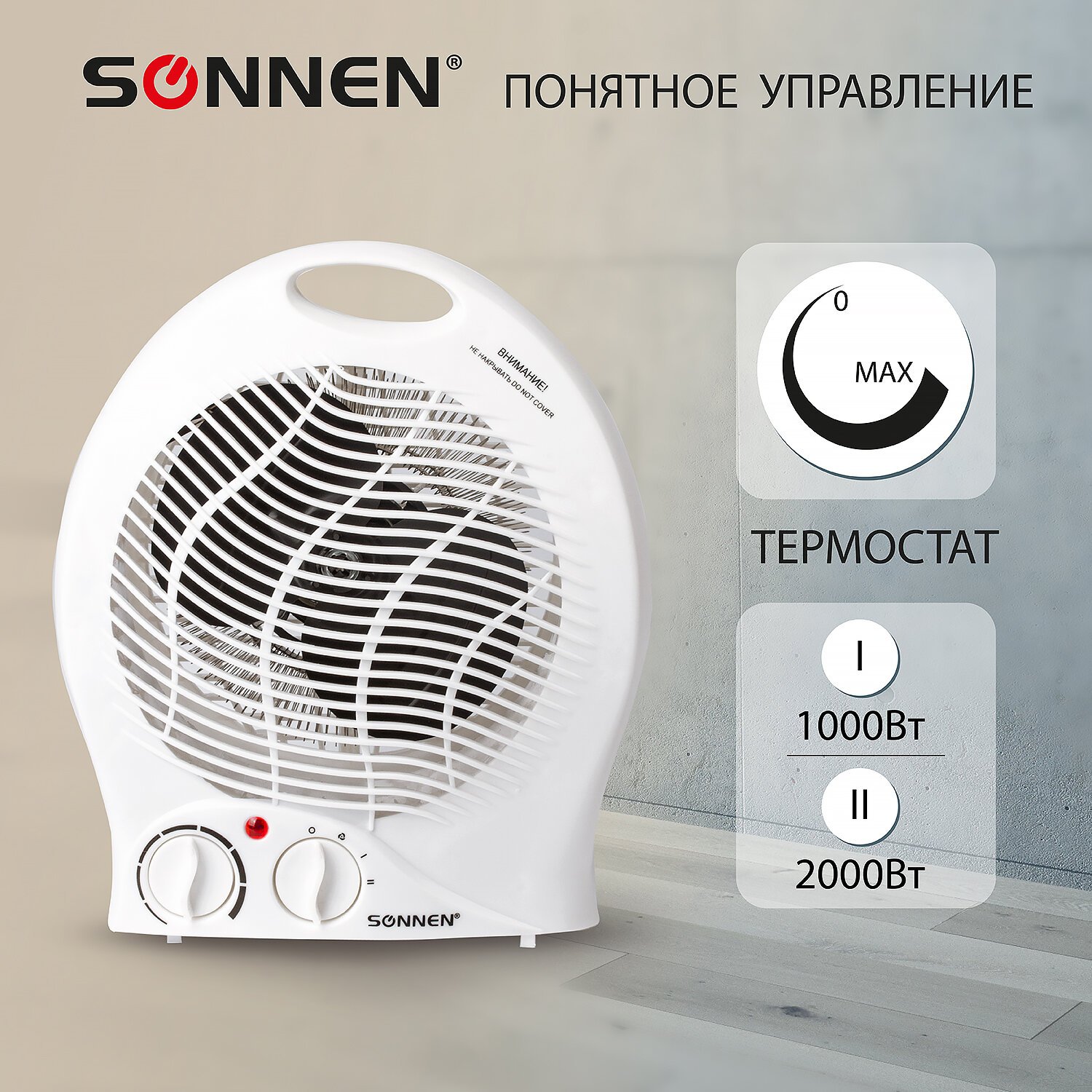 Тепловентилятор SONNEN F-200, 1000/2000 Вт, 2 режима работы, белый, 453493