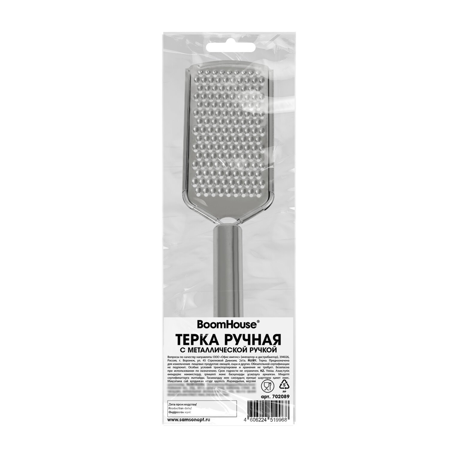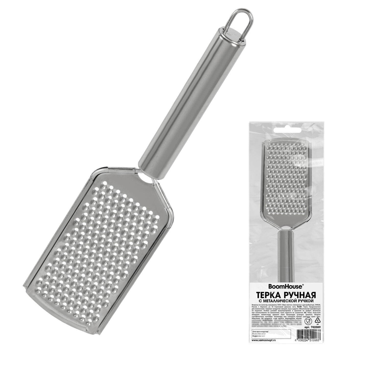Терка ручная с металлической ручкой, мелкая нарезка, нержавеющая сталь, BOOMHOUSE, 702089