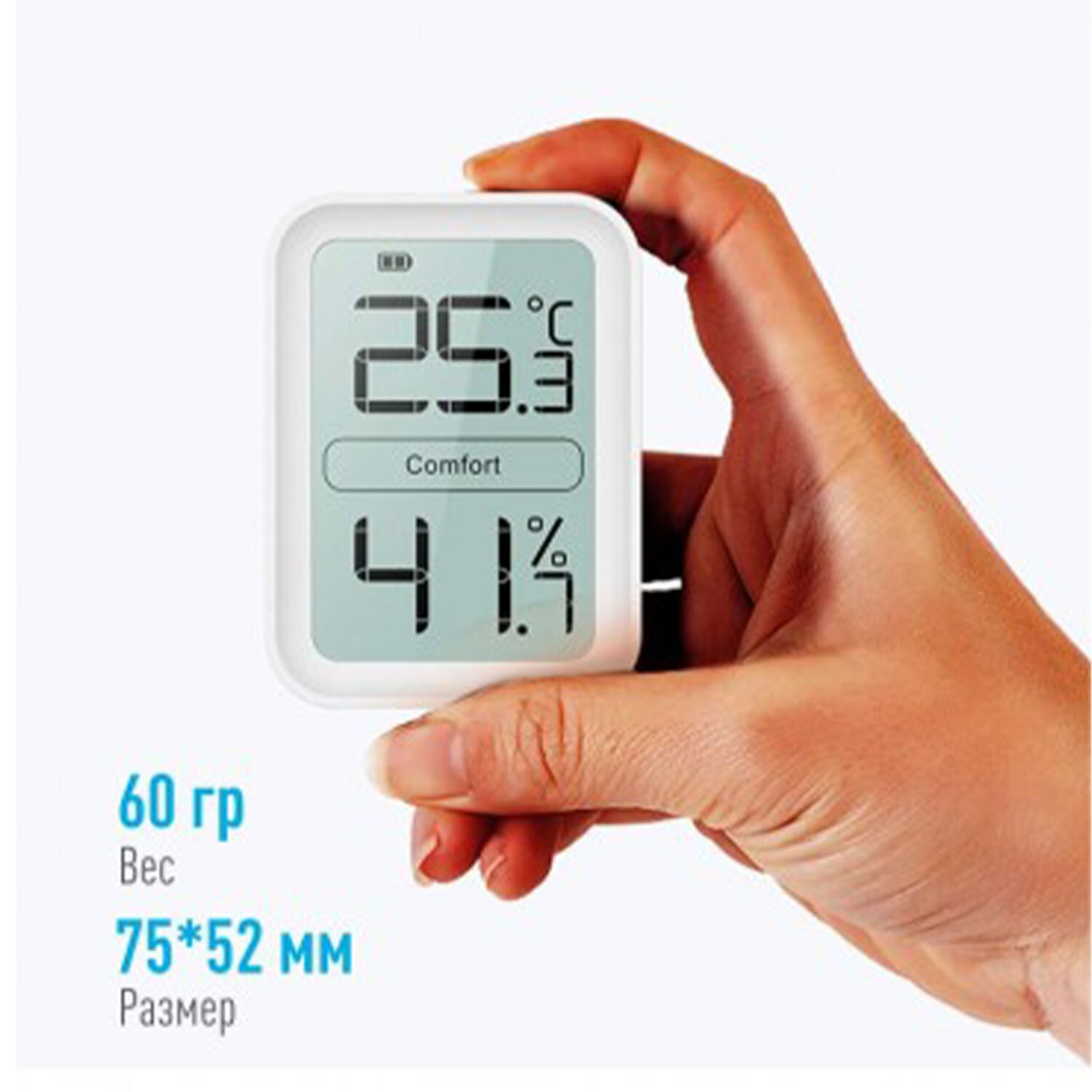 Точный, с современным дизайном, измеритель температуры и относительной влажности воздуха внутри помещения. В измерителе используется новейший сенсор швейцарской компании Sensirion, обеспечивающий высокую точность измерения.