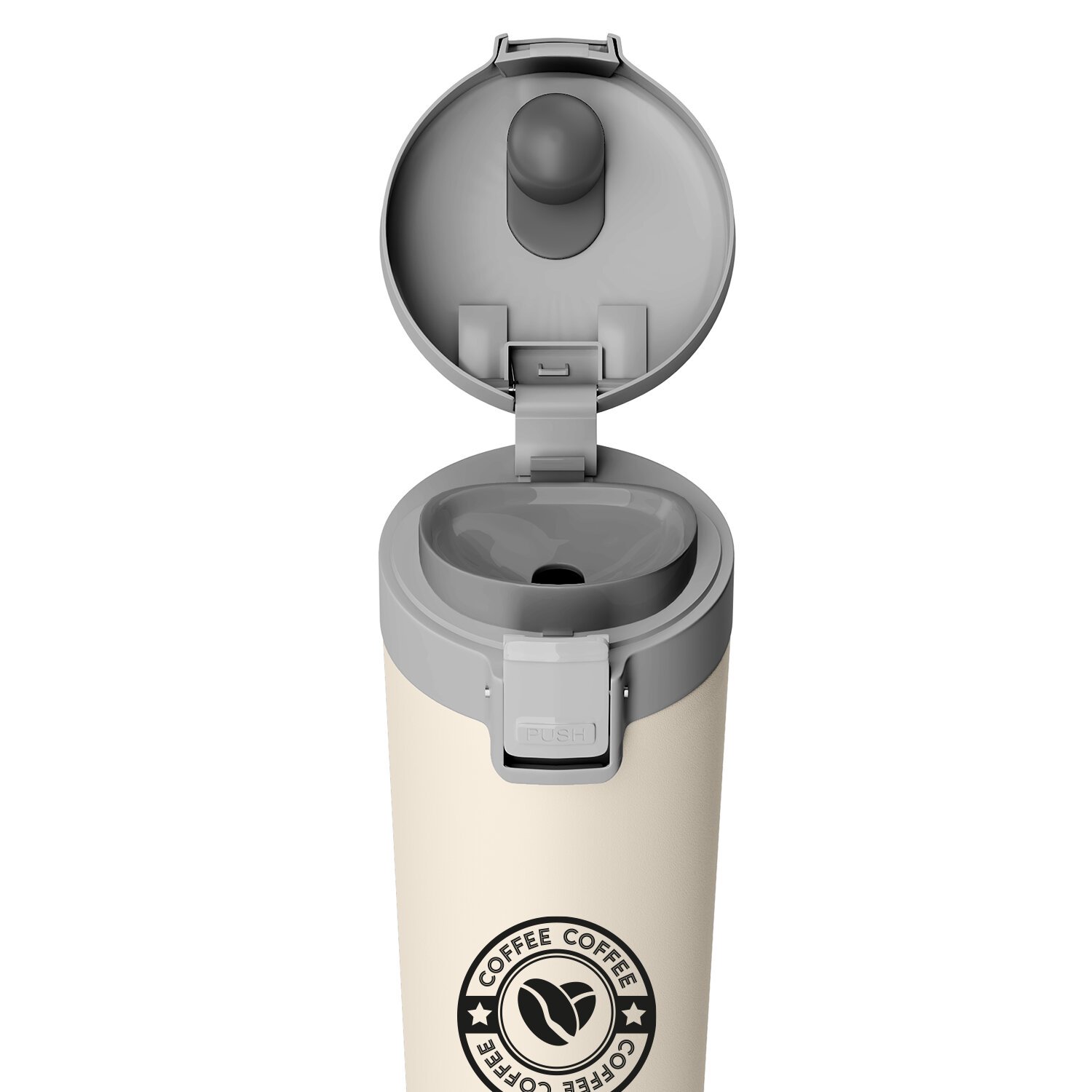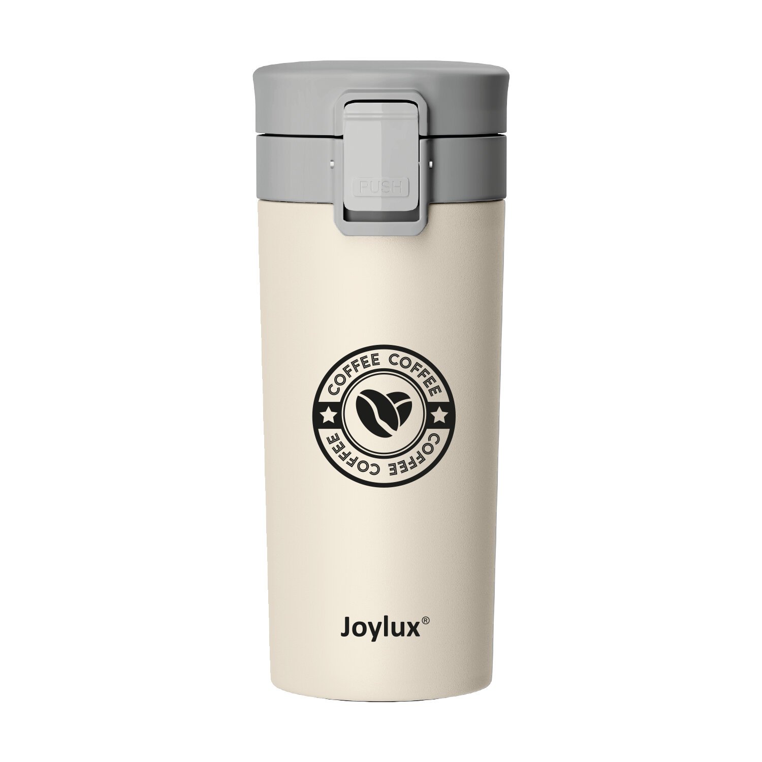 Термокружка 380 мл JOYLUX CLASSIC COFFEE, нержавеющая сталь SUS304, бежевый с принтом, 700273