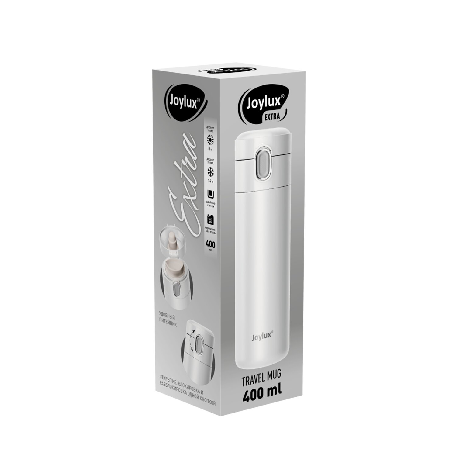 Термокружка 400 мл JOYLUX EXTRA STYLE, нержавеющая сталь SUS304, белый матовый, 700281