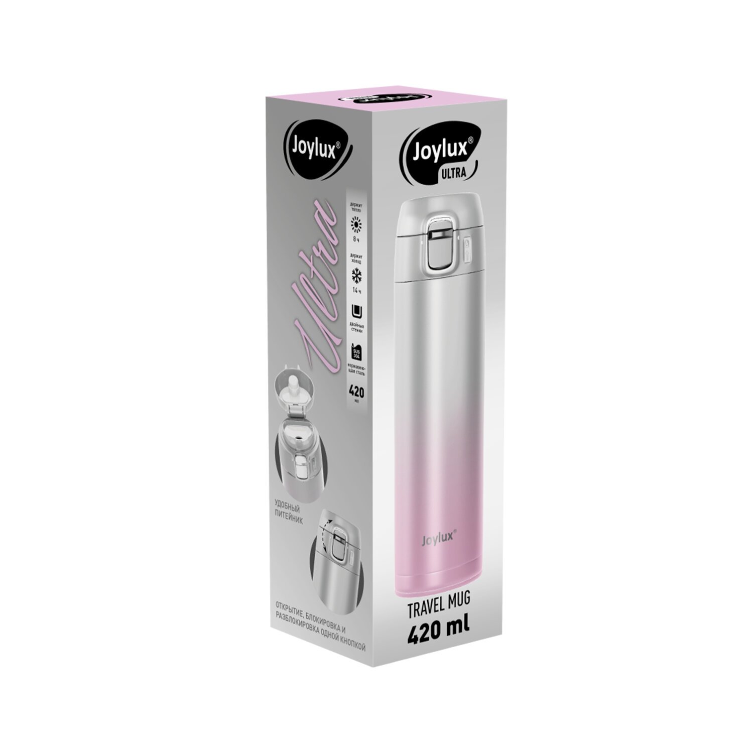 Термокружка 420 мл JOYLUX ULTRA GRADIENT, нержавеющая сталь SUS304, белый/розовый, 700276