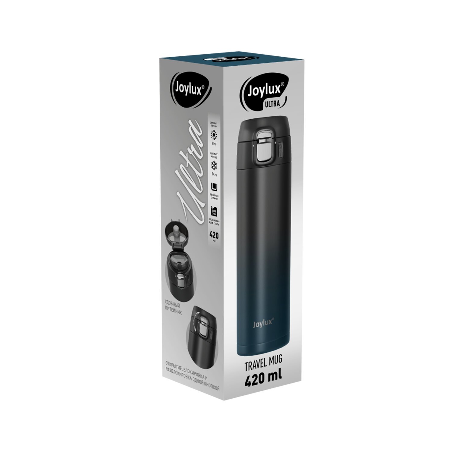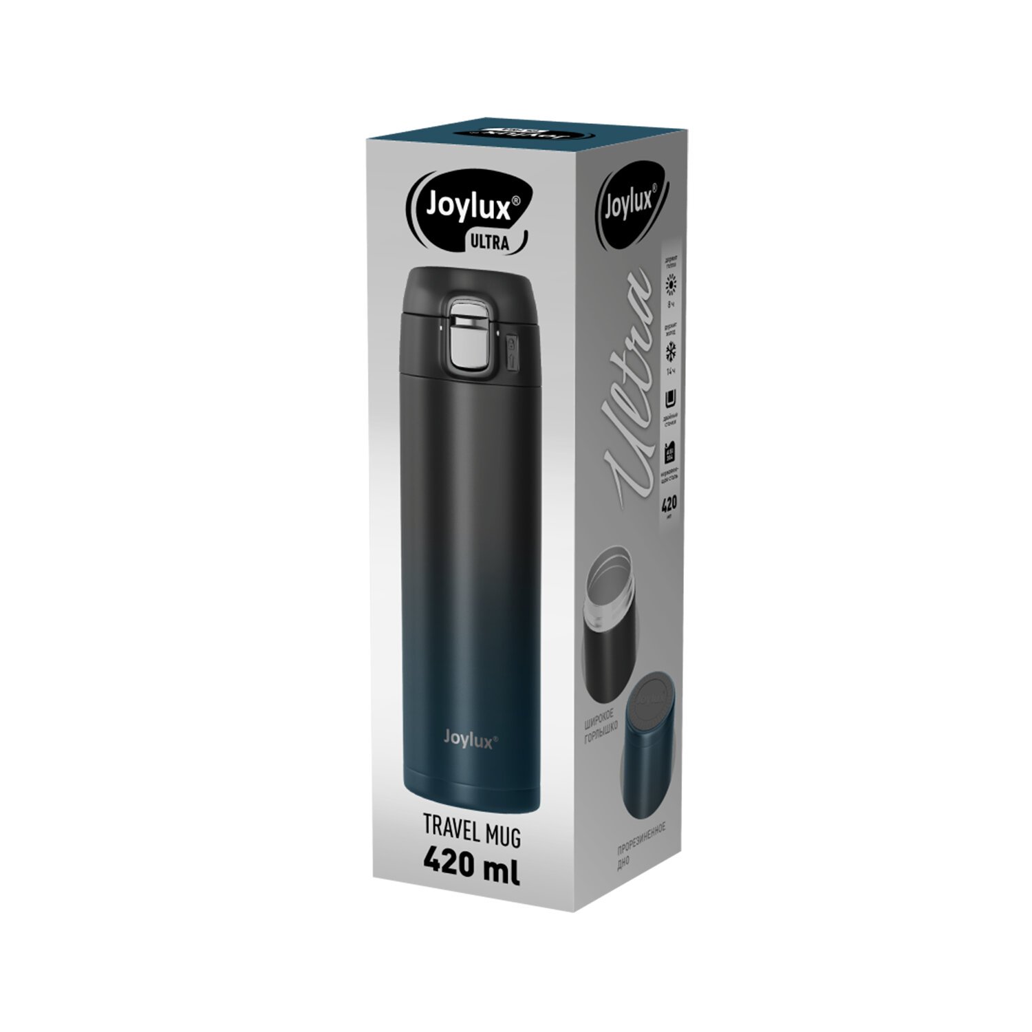 Термокружка 420 мл JOYLUX ULTRA GRADIENT, нержавеющая сталь SUS304, черный/синий, 700275