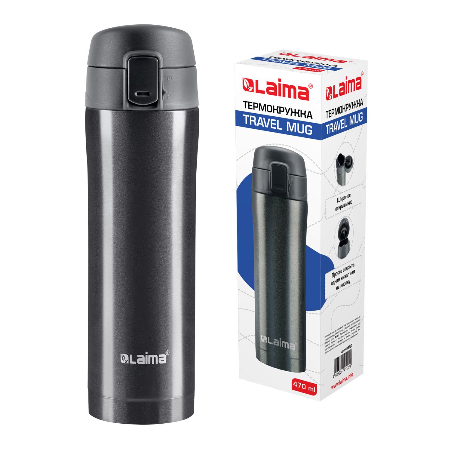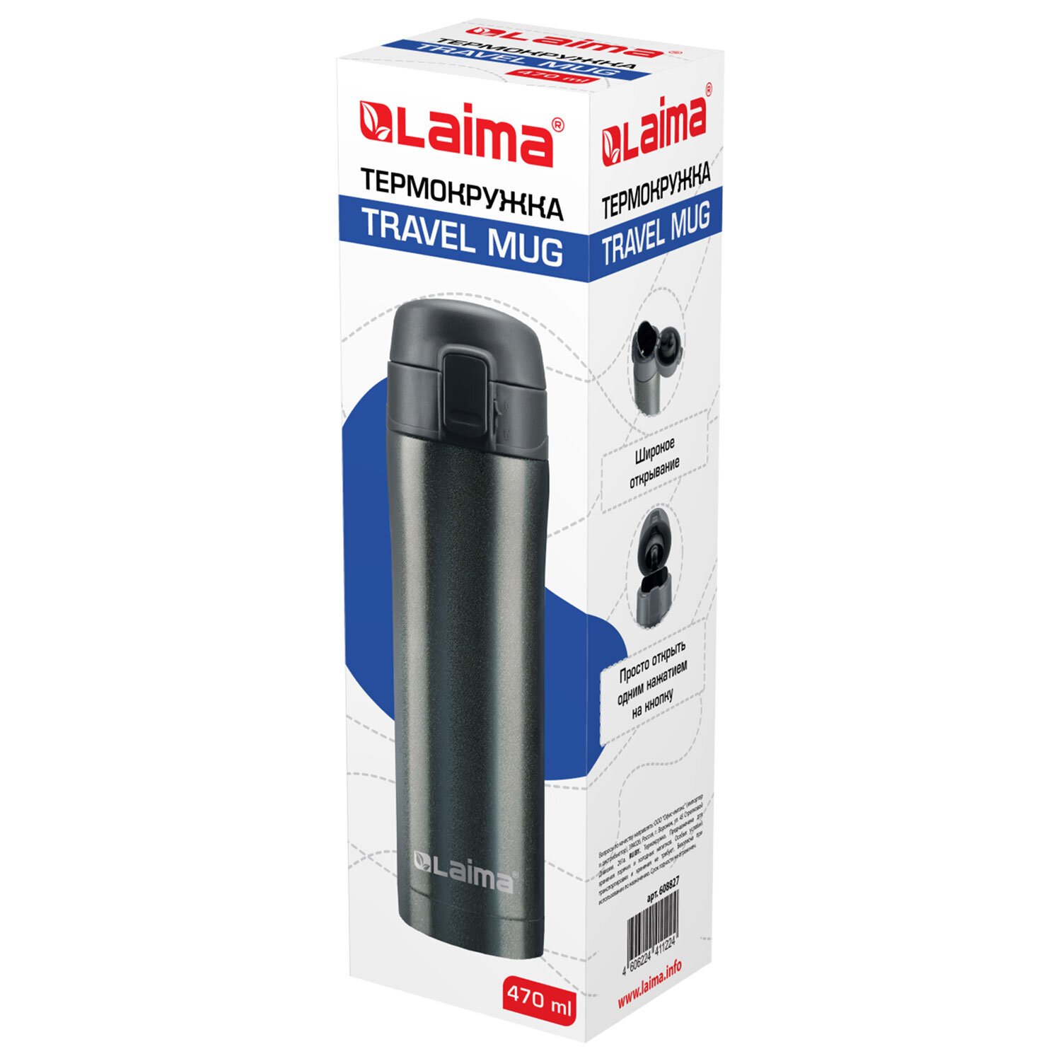 Термокружка LAIMA с двойной стальной стенкой изготовлена из нержавеющей стали марки 304 медицинского уровня. Сконструирована по вакуумной технологии.