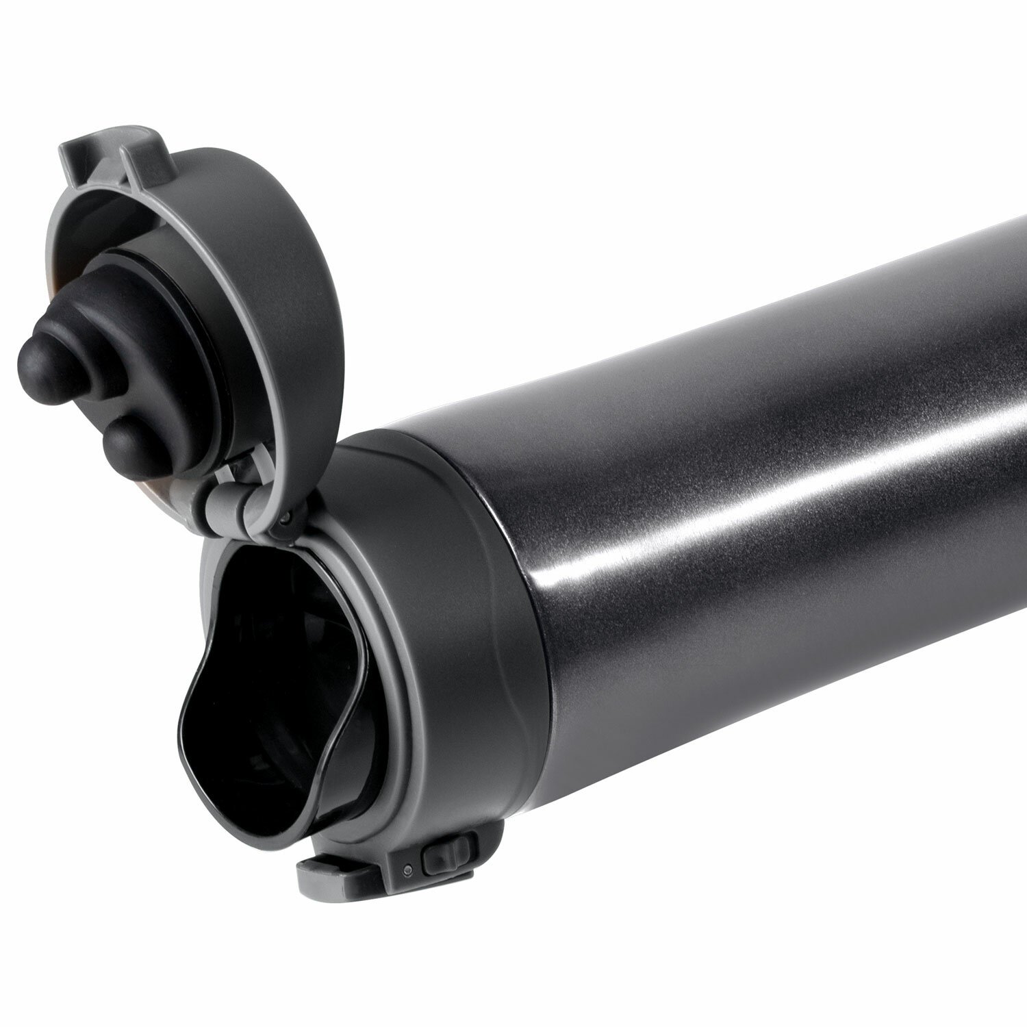 Термокружка обладает оптимальной формой для фиксации в держателе автомобиля, что позволяет использовать ее во время поездок. Термокружка снабжена откидывающейся крышкой с кнопкой, позволяющей с легкостью использовать ее одной рукой. Также, для защиты от непроизвольного нажатия кнопки, кружка имеет специальный защитный замок-предохранитель.