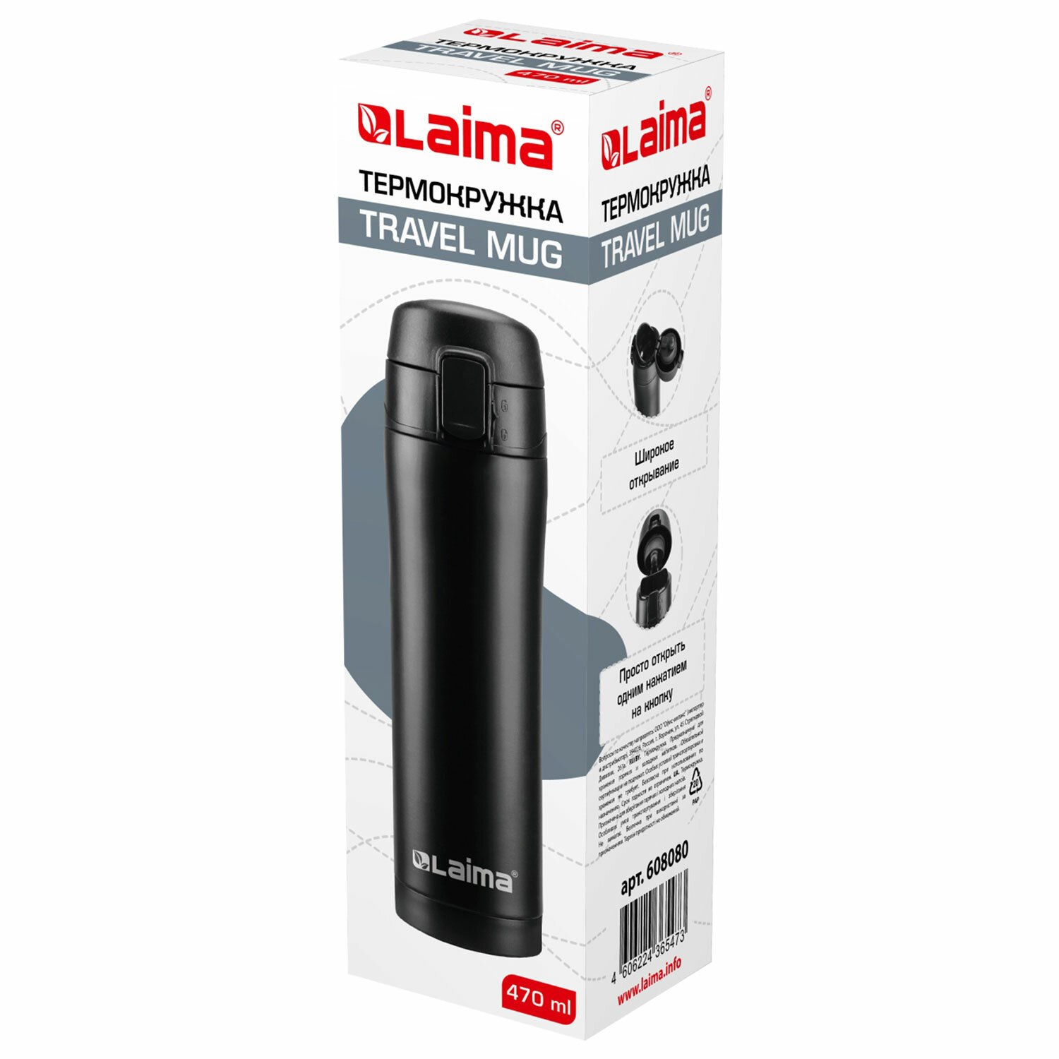 Термокружка LAIMA с двойной стальной стенкой изготовлена из нержавеющей стали марки 304 медицинского уровня. Сконструирована по вакуумной технологии.