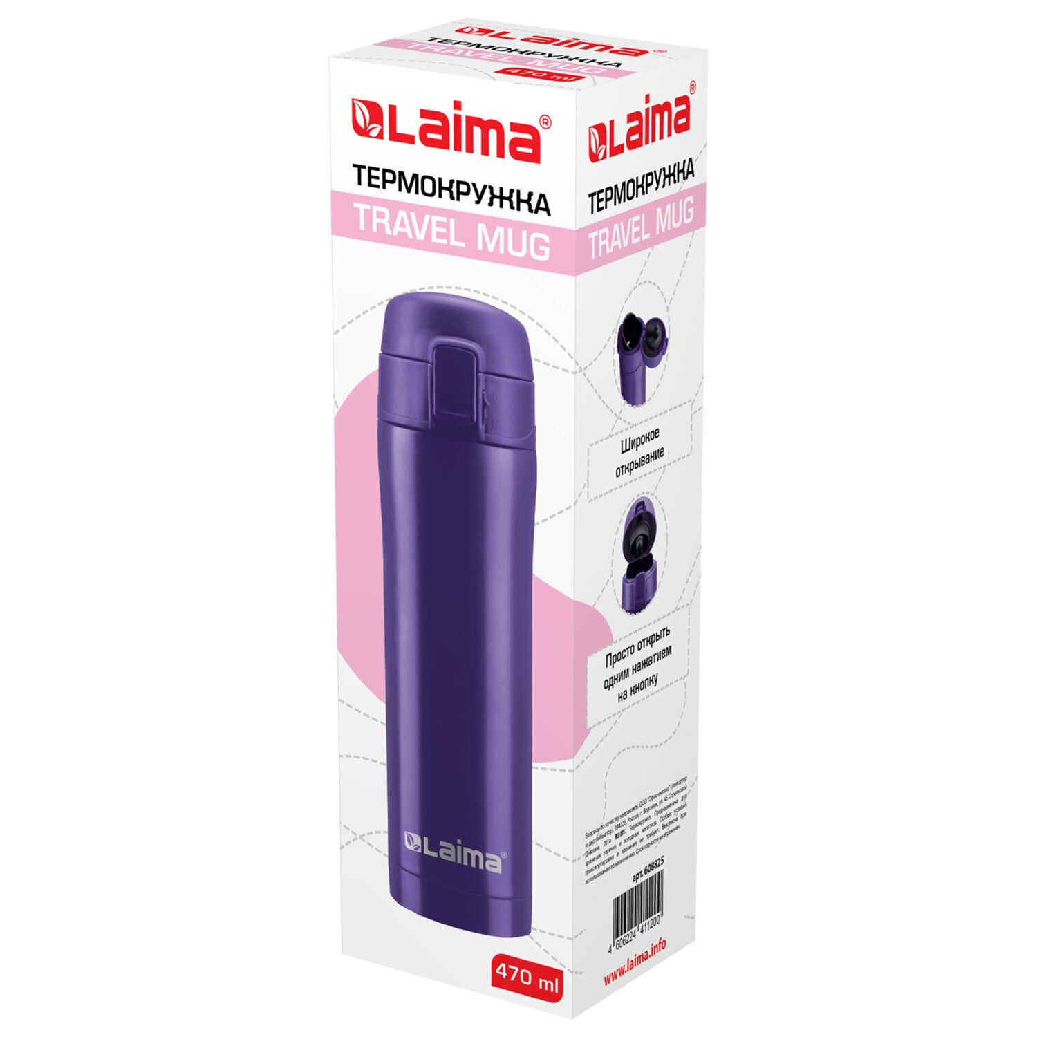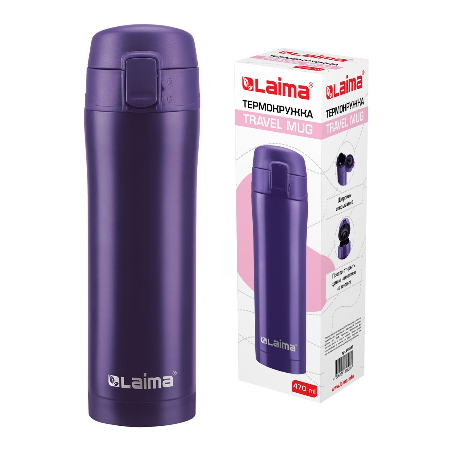Термокружка 470 мл из нержавеющей стали SUS304, царский фиолетовый матовый, LAIMA, 608825