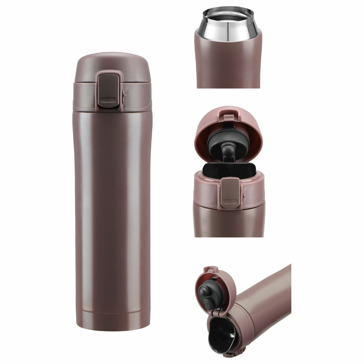 Термокружка 470 мл из нержавеющей стали SUS304, имперский коричневый матовый, LAIMA, 608082